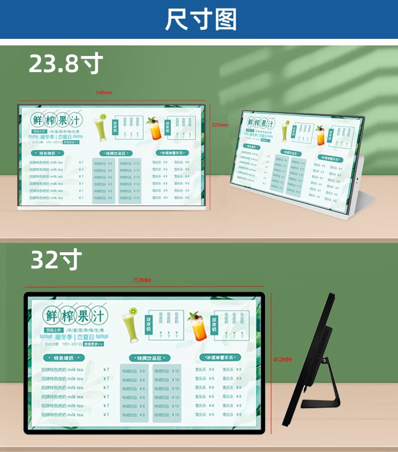 畅视达 电子菜单显示屏桌面菜单显示屏菜单展示牌电子餐牌电竞网咖桌球奶茶店吧台价格目录屏 23.8寸全屏黑色菜单屏中配L2 900高亮 23.8寸全屏黑色菜单屏中配L2 900高亮
