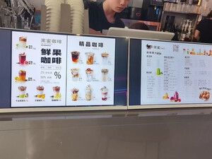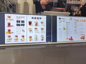 像我们这种奶茶店就需要这种价格屏,直观的给客户看到奶茶。