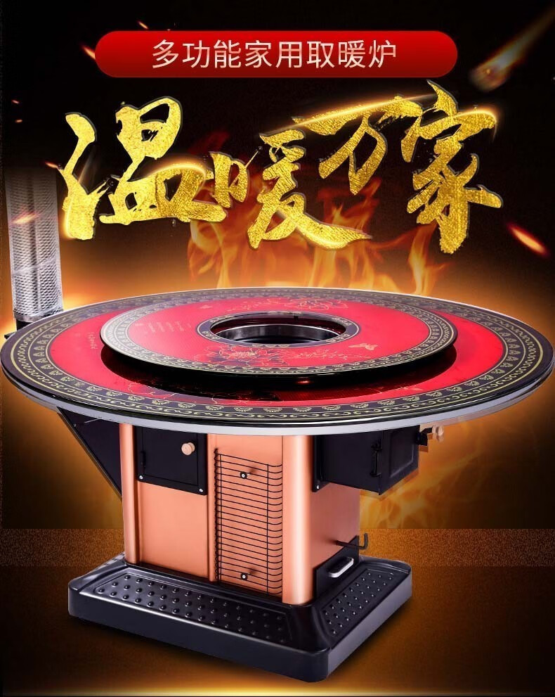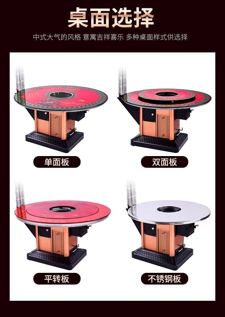 顺熠特厚取暖炉农村家用烧柴炉室内节能柴煤两用烤火炉子柴火炉取暖桌 1.2米平转不锈钢面-柴煤两用炉