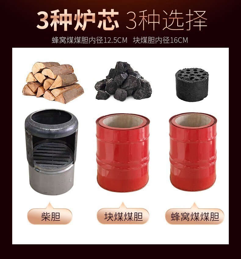 璞灶旺冬季柴火灶加厚加高农村取暖炉烧柴家用节能柴煤两用多功能回风炉 1米圆桌不锈钢(柴火炉)