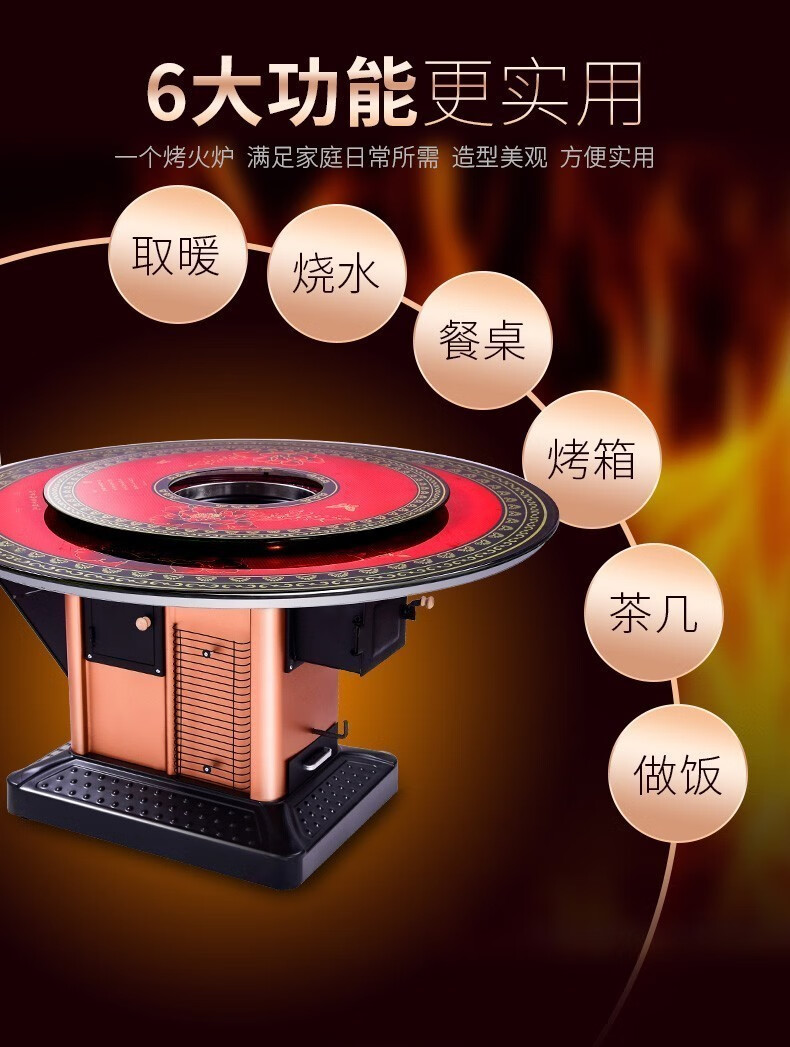 【送货上门】昊燃·取暖炉农村冬季新款气化炉室内烤火 加厚柴煤两用多功能转盘节能无烟采暖炉回风炉 1米加厚防爆玻璃单桌面 (柴煤两用)