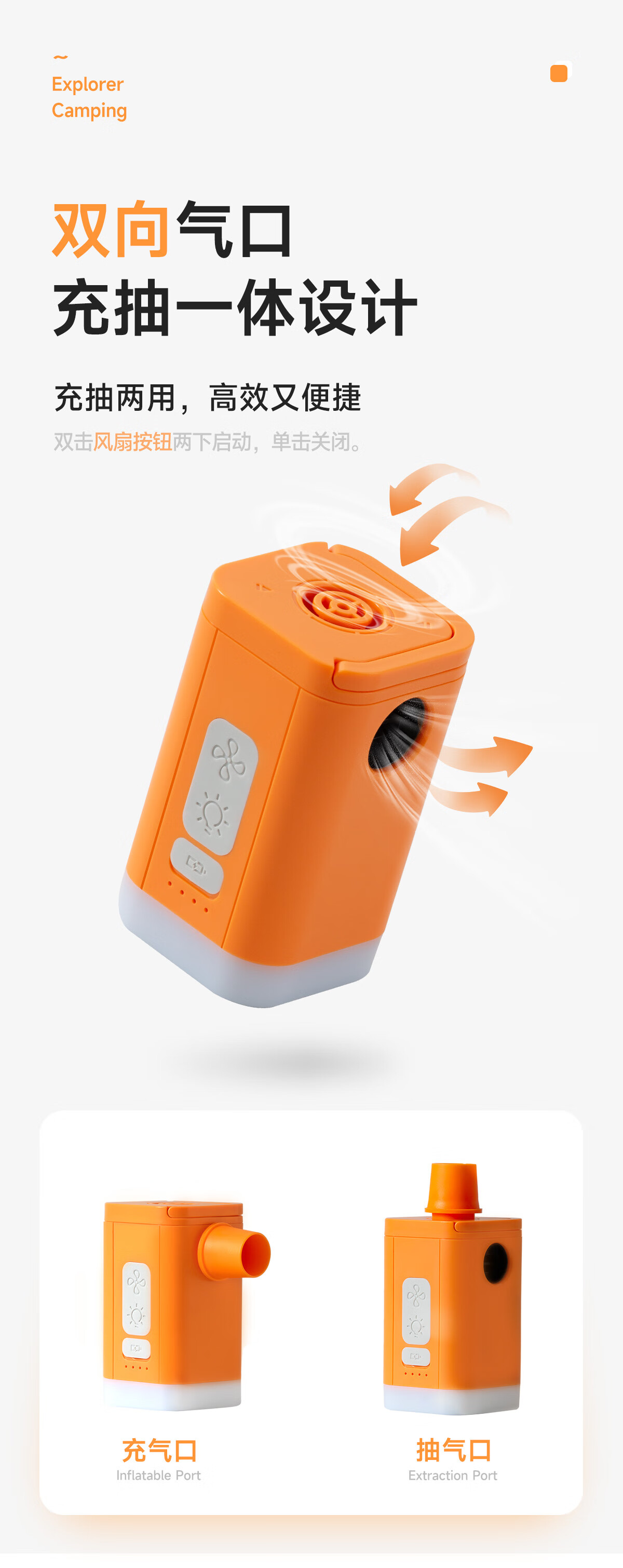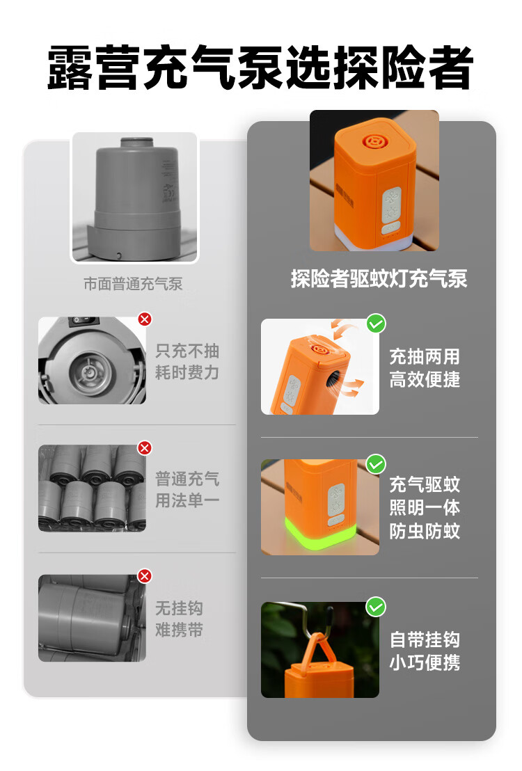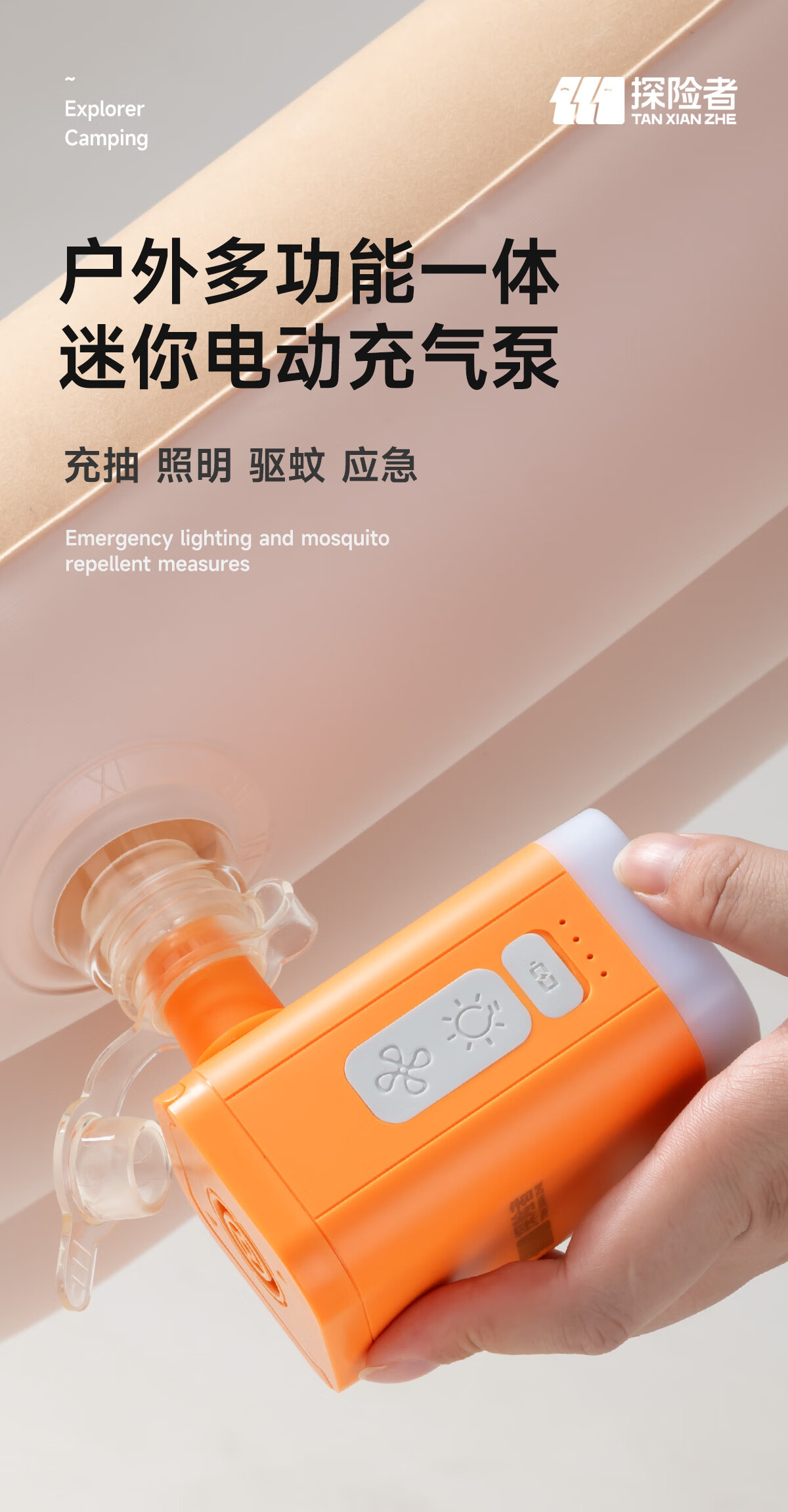 探险者(TAN XIAN ZHE)自动充气床垫电动充气泵气垫床充气泵露营户外充气泵驱蚊灯充气泵 【爱马仕橙】驱蚊灯充气泵*1