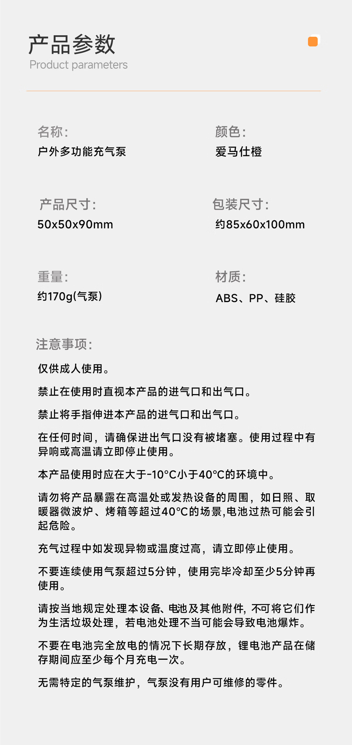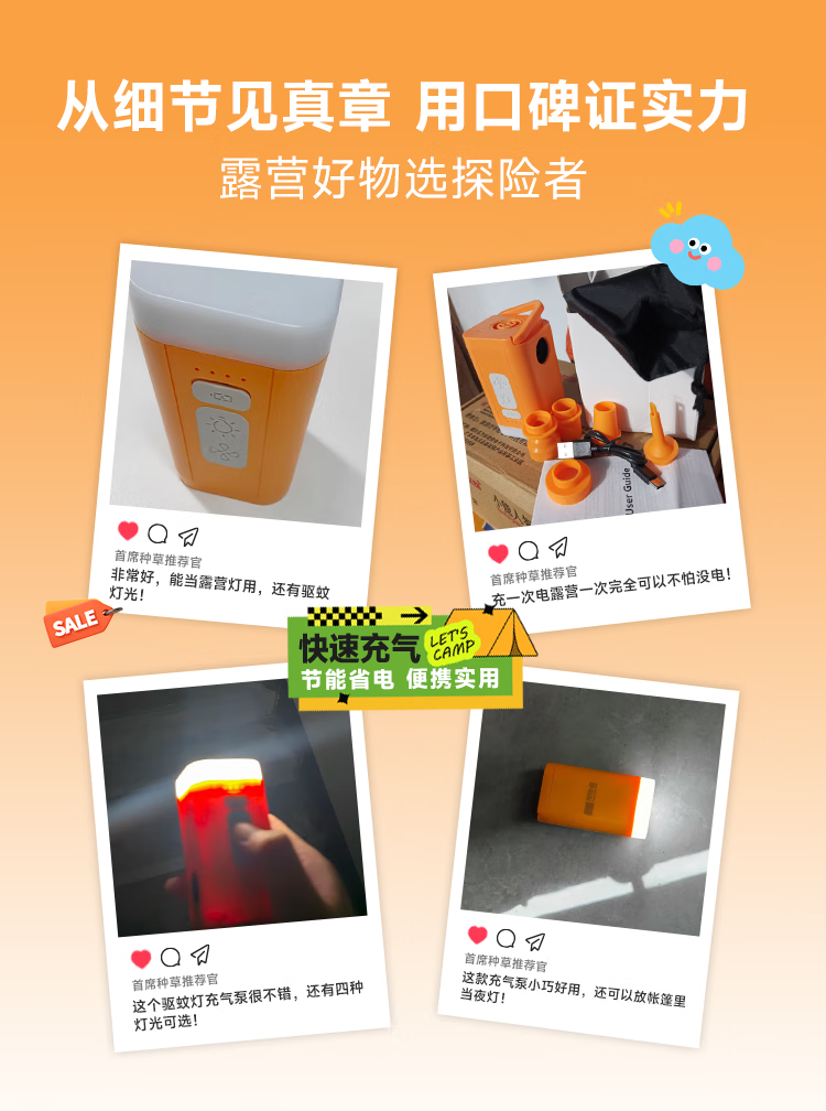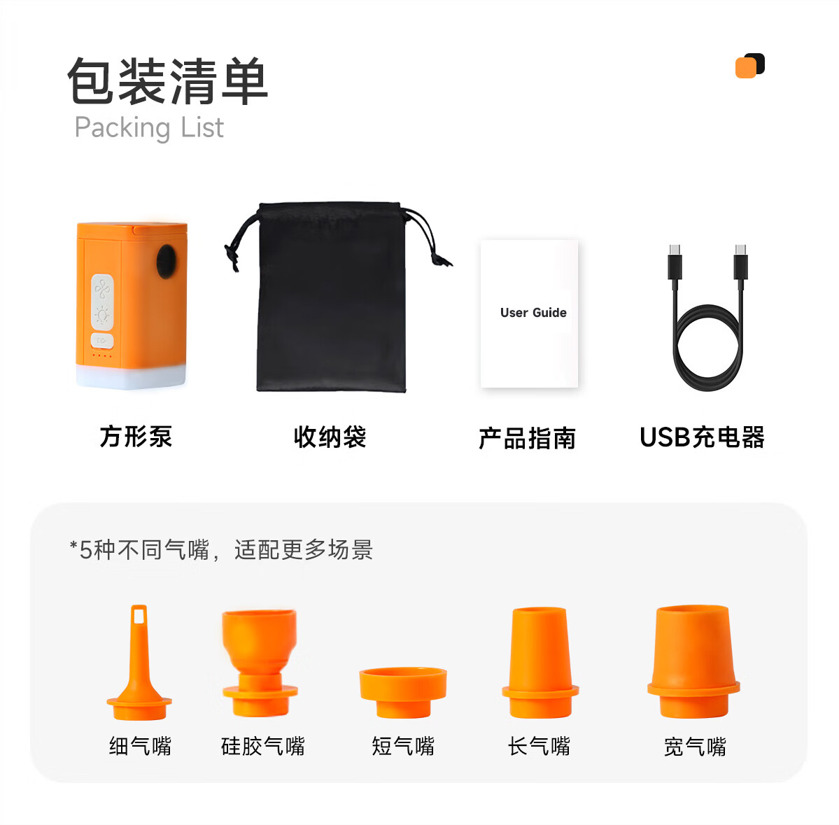 探险者(TAN XIAN ZHE)自动充气床垫电动充气泵气垫床充气泵露营户外充气泵驱蚊灯充气泵 【爱马仕橙】驱蚊灯充气泵*1