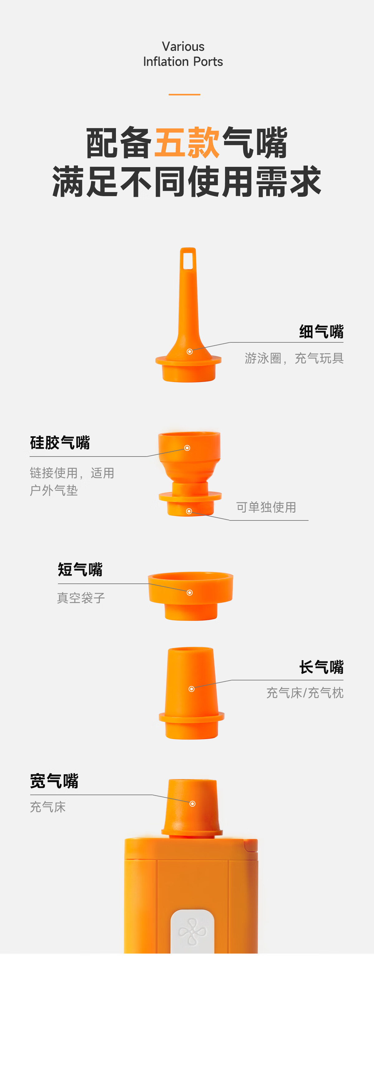 小巧的便携充电充气机,按2下开关启动充气,家里的充气床垫80*200的,用了1分多钟充足,风力还是挺大的