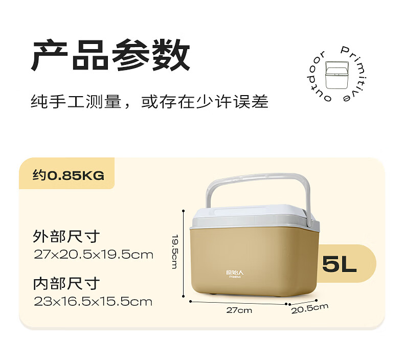 原始人(The Primitive)保温箱冰块冷藏箱户外露营旅行车载冰桶商用摆摊钓鱼小型便携保温 卡其5L-配冰盒+冰袋*4,质量非常好,送货速度快,性价比高,户外用携带方便,保温效果好,值得拥有!