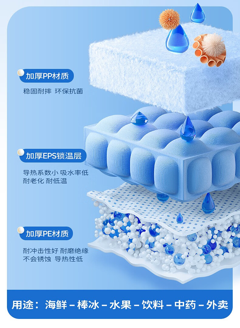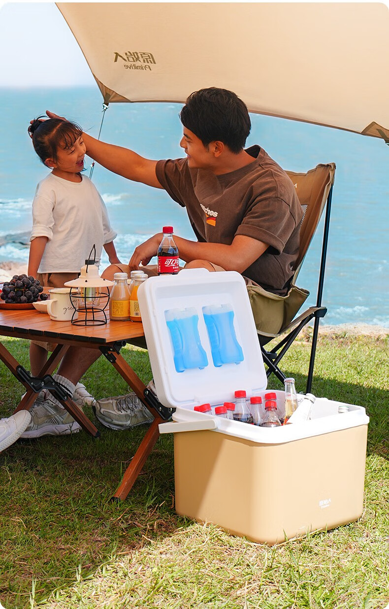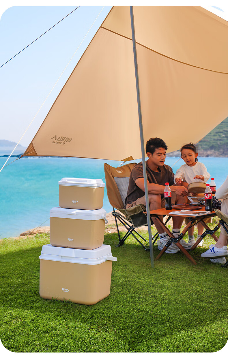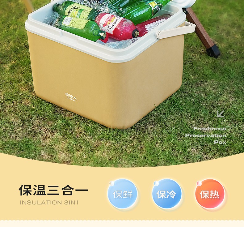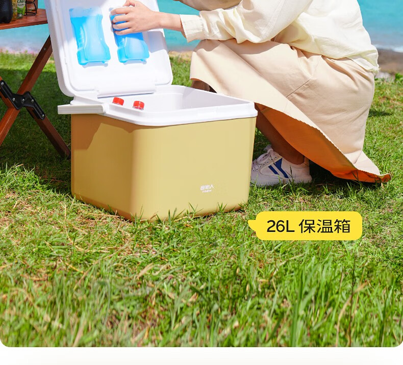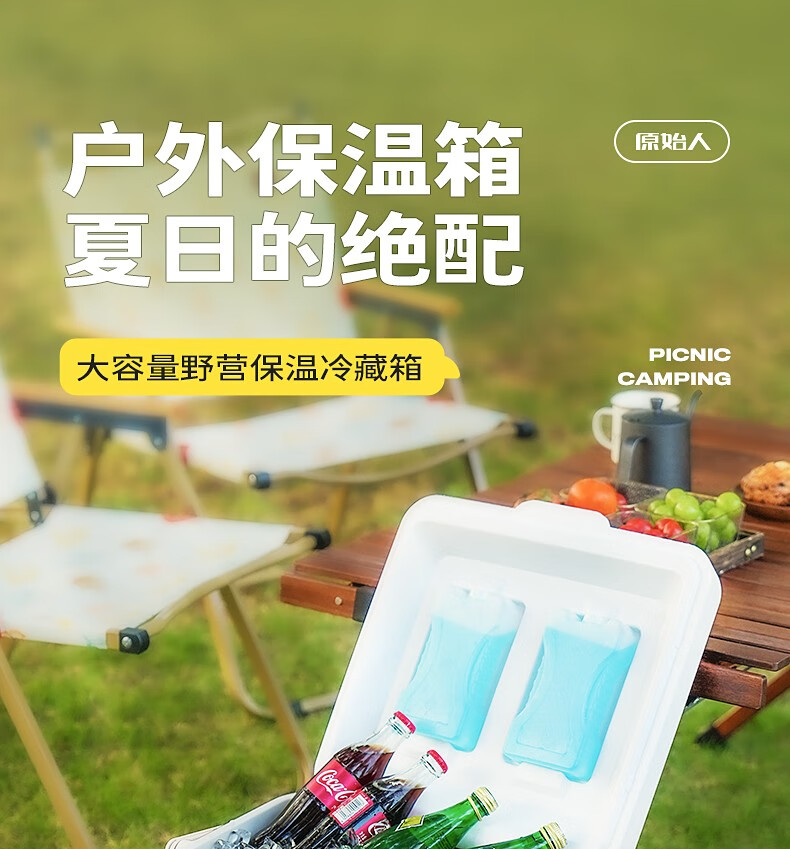 保温箱已收到空间很大户外不愁没有东西装,送了4干冰和很多冰袋儿,有烧烤的肉类,也可以放在里边,不怕坏了。原始人非常不错,很精致