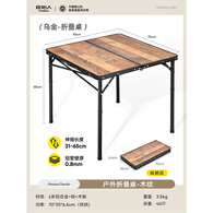 原始人户外折叠桌铝合金露营野餐网格桌烧烤小桌子超轻便携泡茶桌 折叠木纹方桌