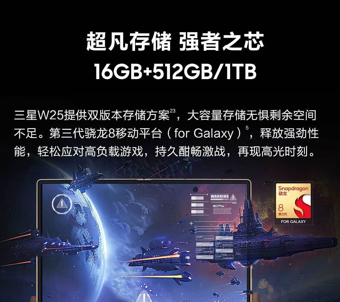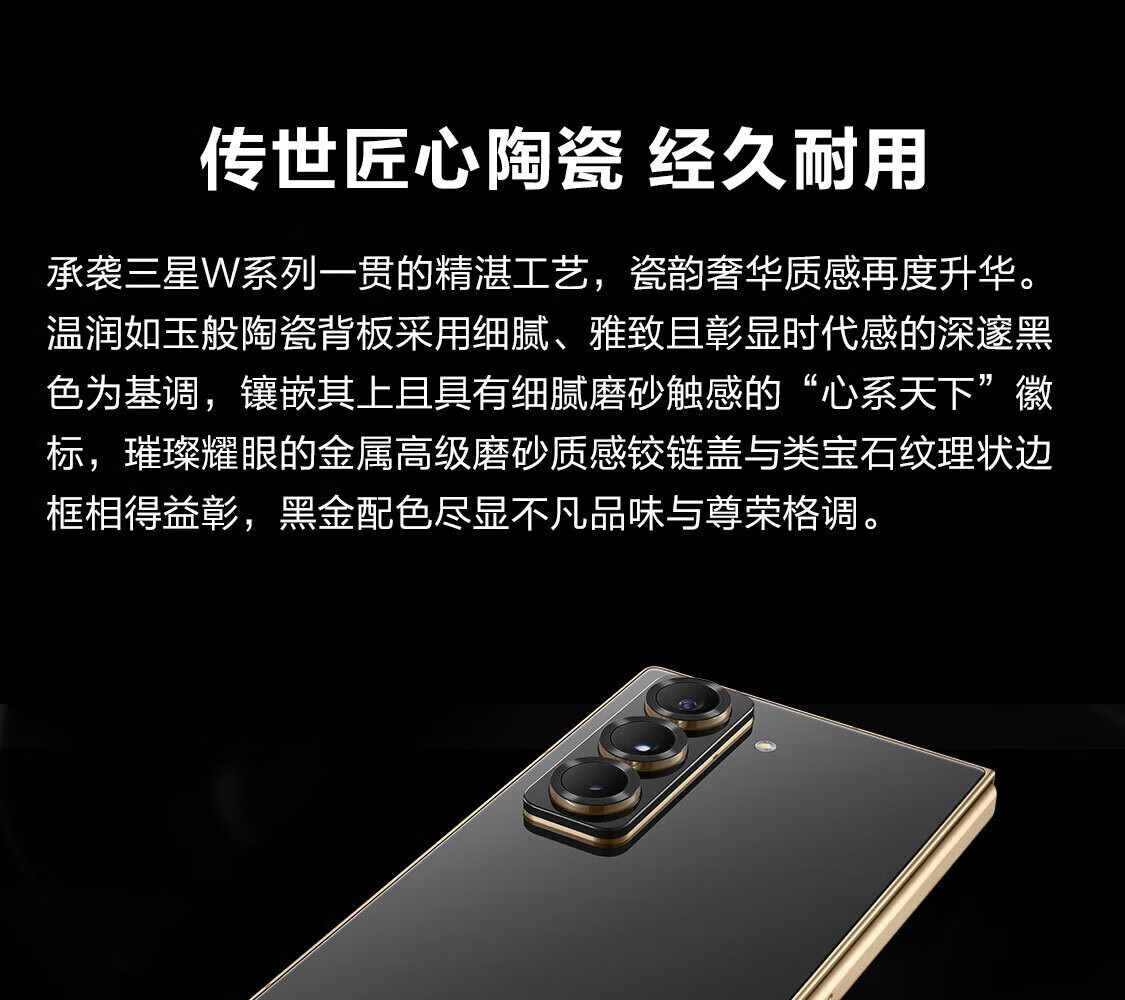 三星Samsung 心系天下 W25超大屏超轻薄至尊陶瓷 2亿像素 超视觉影像系统 智慧Galaxy AI 5G折叠屏手机 陶瓷黑 16GB+1T 12期免息