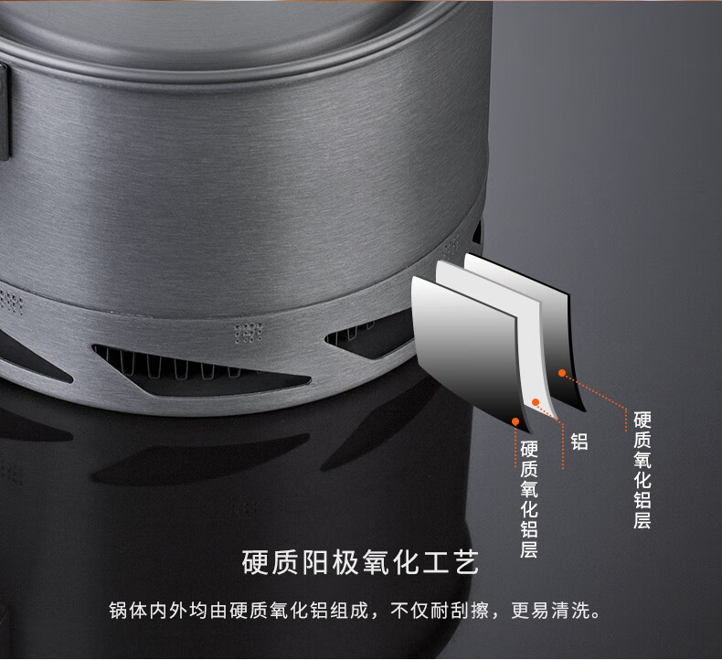 步林(BULin)户外集热锅1.5L硬质氧化铝便携露营野餐烧水煮茶聚热锅具
