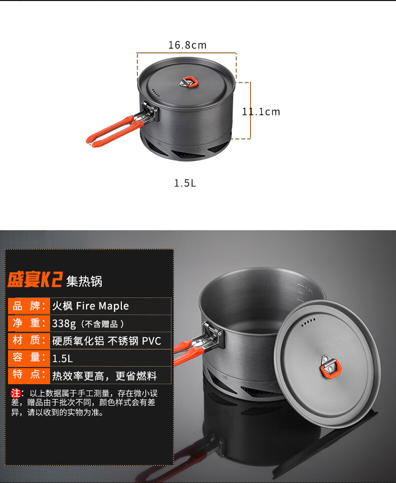 火枫(FIRE-MAPLE)盛宴K2集热锅 户外便携野炊单锅野营野餐锅具可折叠手柄炊具 盛宴K2集热锅