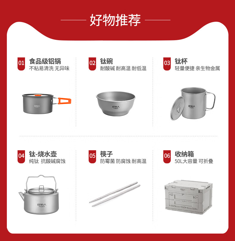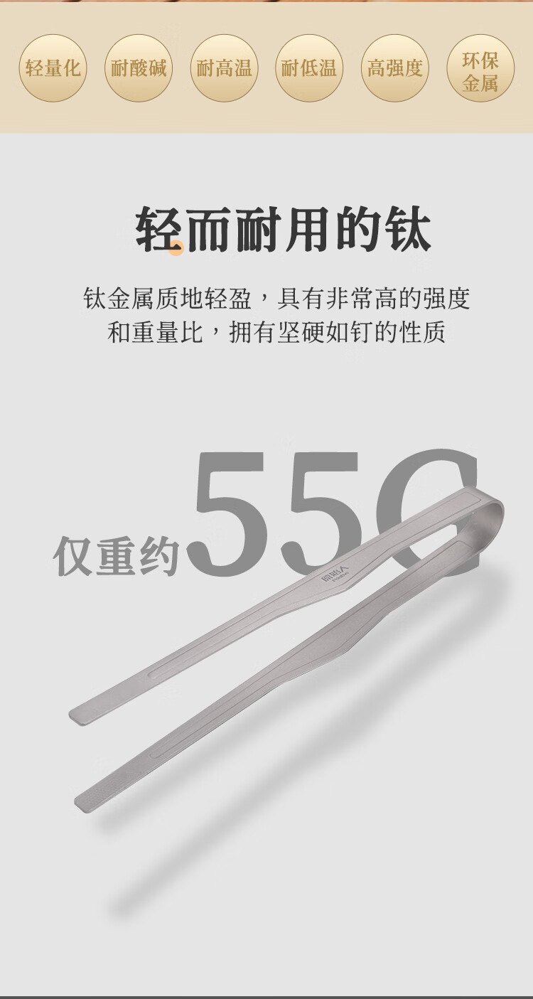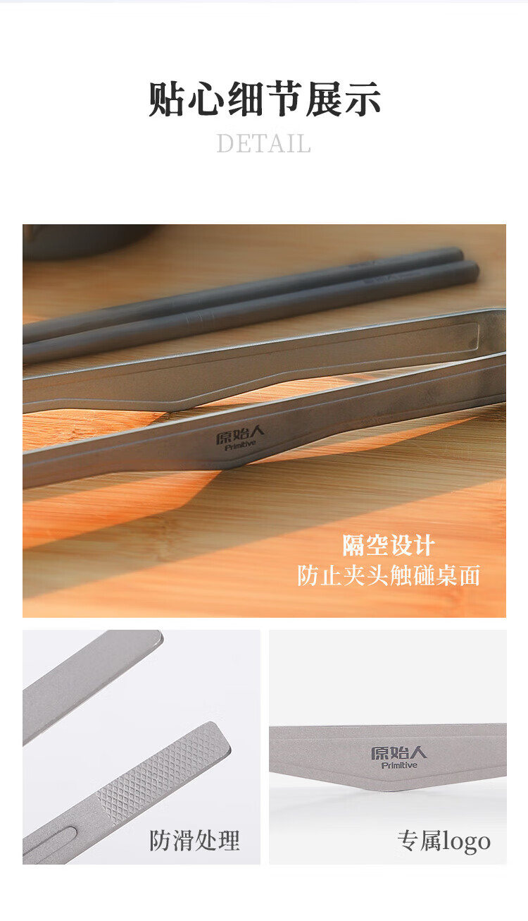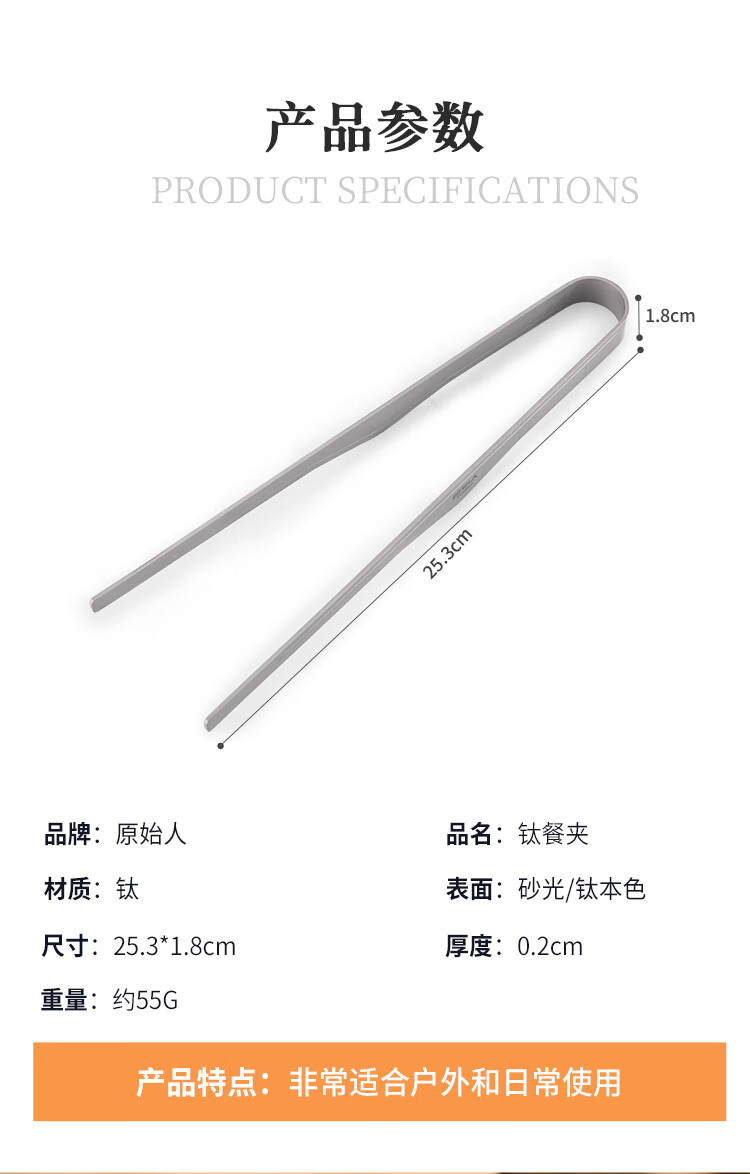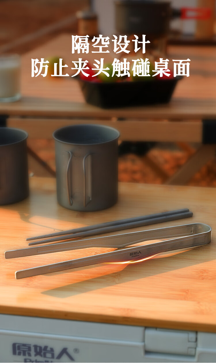 原始人 户外钛合金露营便携式餐具简约轻奢纯钛折叠餐筷野炊装备筷夹子 纯钛餐夹