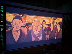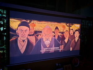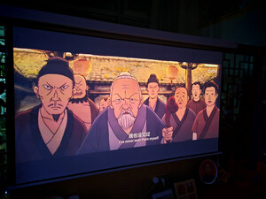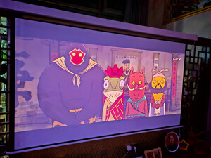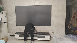 刚装好幕布,简单调了下色调,亮度真没得说!等吊装架到货后再慢慢调。