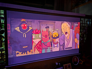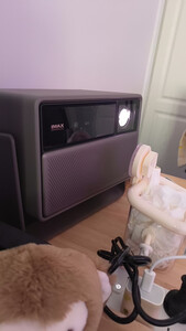 精挑细选了好久才下单买了这部极米RS 20高亮版,画质很好,操作简单,最重要的是投射比满足我家客厅大,但是墙壁不够大的投影需求,可以在3米多无损投出120寸,效果还是杠杠滴,自带的哈曼卡顿音响也很给力。刚好有国家补贴,性价比很高。手机拍出来明显偏红,肉眼看没这个问题。