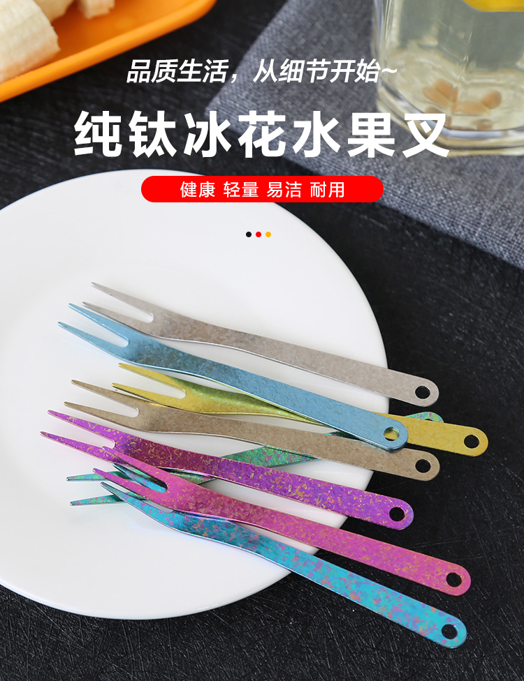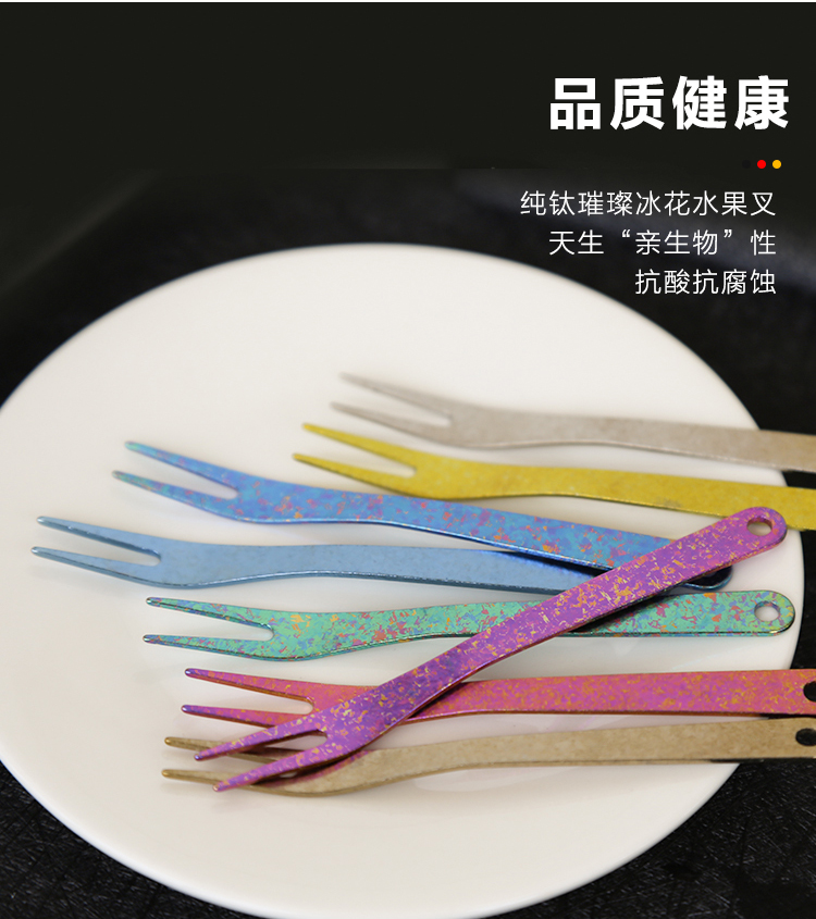钛途(TITO TITANIUM)纯钛叉勺0.8mm99.5%钛合金家用户外野营餐具厨具叉子勺子 暮光冰花璀璨炫彩-钛勺