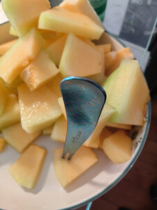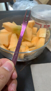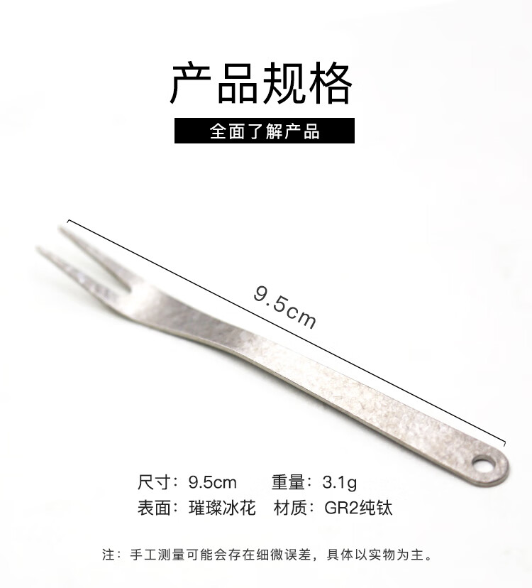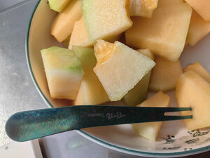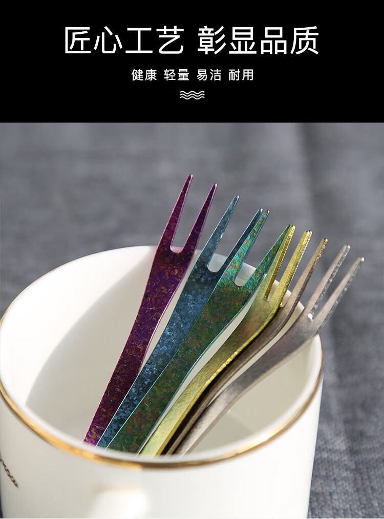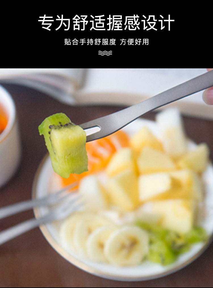 精致小巧。钛材料让我放心。又水果吃感觉特别好。买了这玩意儿以后多吃哈密瓜。要把哈密瓜切成小块的。一边看书一边吃一块,感觉好极了。