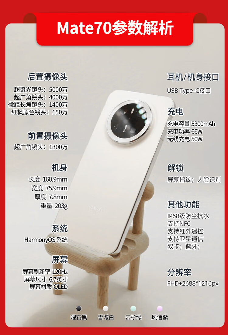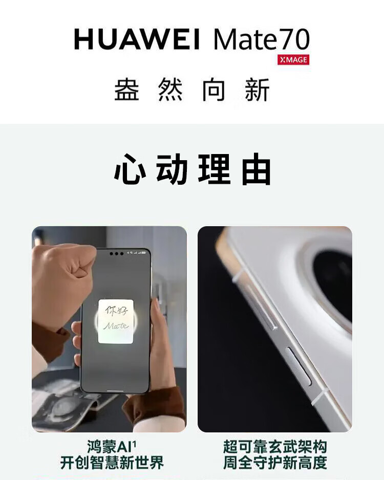 华为mate70pro 标准版 玄武架构 红枫影像 华为mate70系列 云杉绿【mate70】 12GB+512GB 全国联保 电子保卡已启用