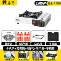 北乐卡式炉户外便携式煤气灶炉具瓦斯炉卡磁炉露营家用燃气灶火锅炉子 【卡式炉-白】4气+防风圈+手提箱+鸳鸯锅