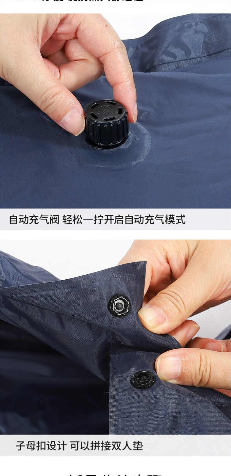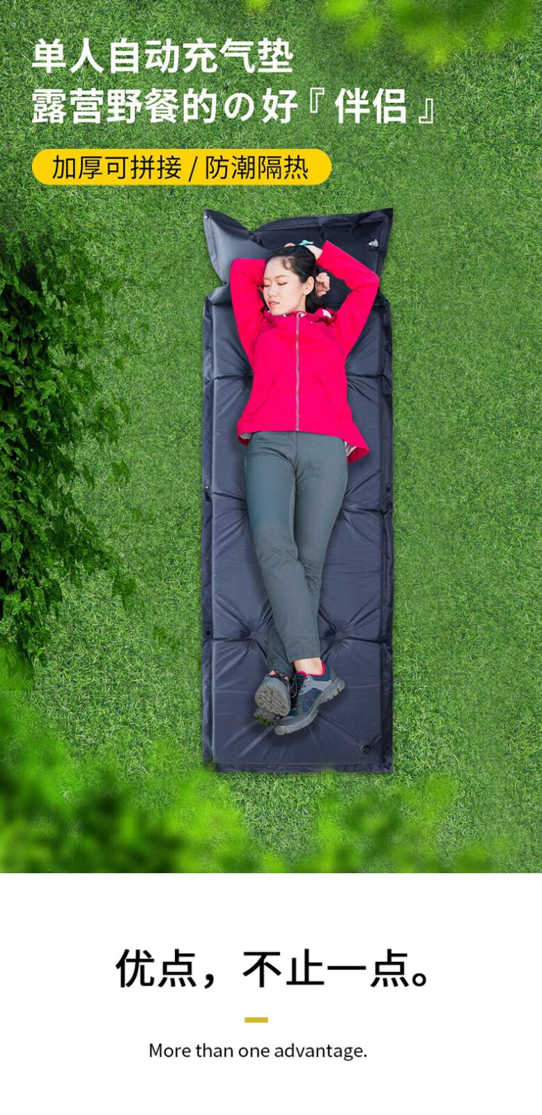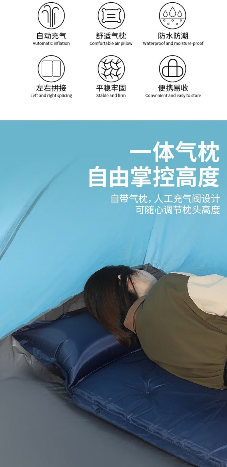 用了一次,做工可以,适合野外露营。就是自动充气比较快,收纳排气也不是特别方便。另外枕头需要手动吹气还不错