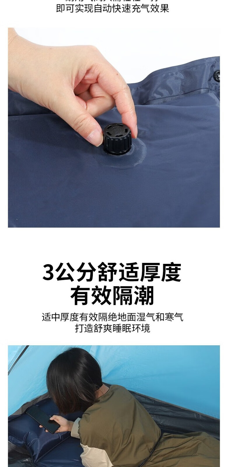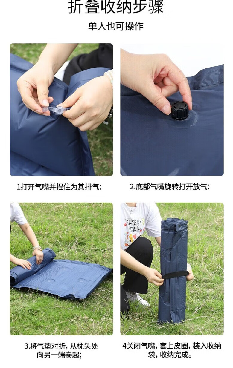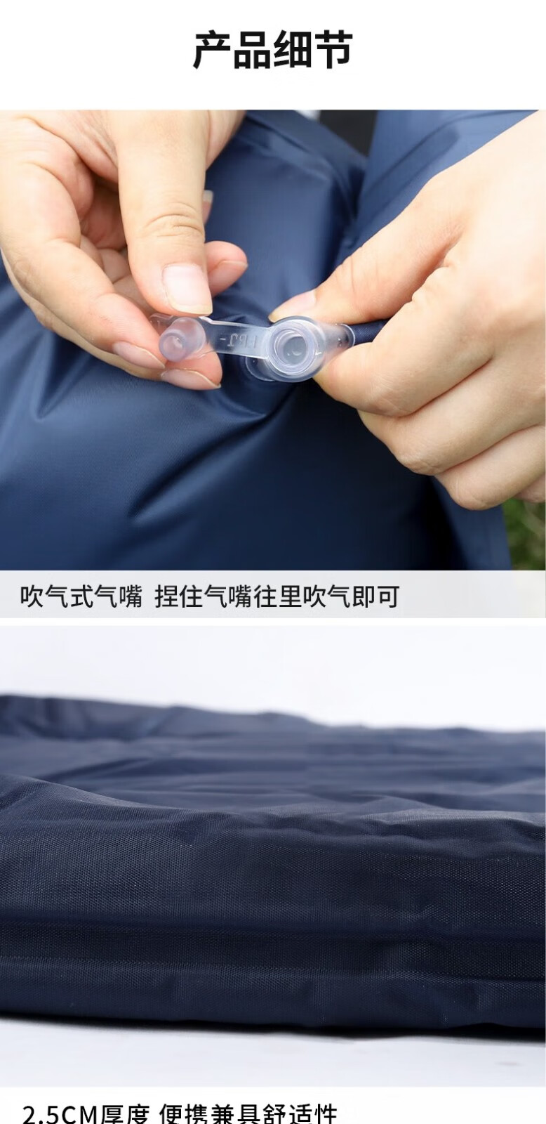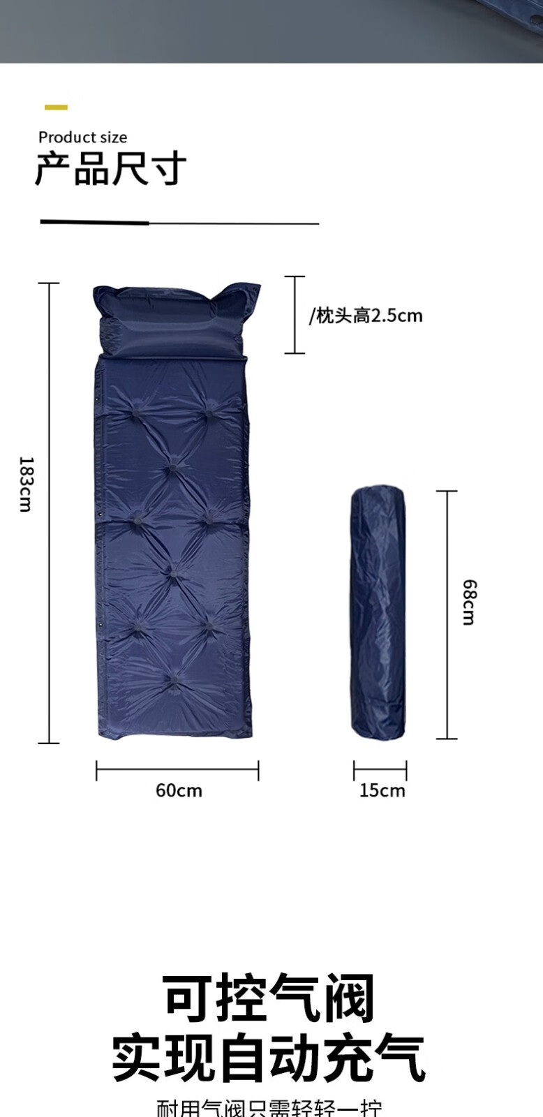 铂呐苓自动充气垫户外防滑垫易收纳防潮垫睡垫带枕头单人款露营装备 单人深蓝充气垫