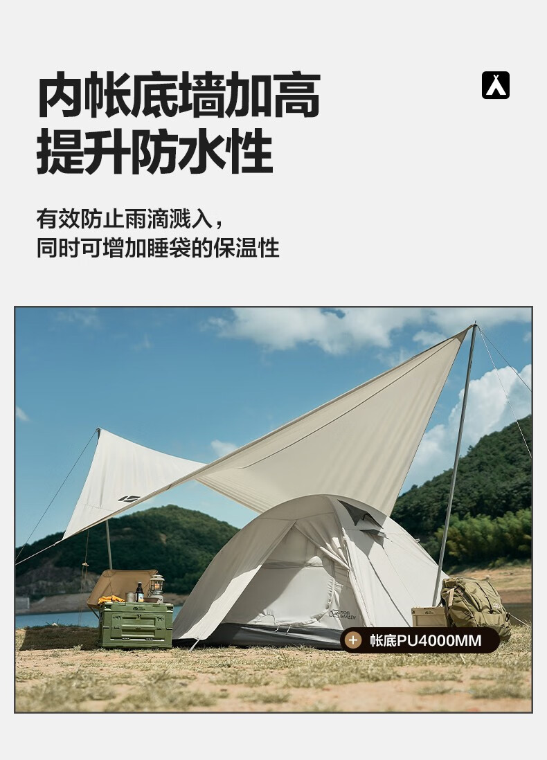 防水效果:怎么说了,冷山2嘛,大家都知道,那必须是相当不错的。 适用场景:主要用于徒步以及骑行这一块吧,整体还是不错的,稍微比uil2重 容纳人数:一般就自己一个人 透气效果:还没有试过,网上评价都还不错,过几天试试吧 展开类型:没有太极2啥的方便,特别是下雨等天气 便携性能:还是有点重哈哈哈,不过我背的动,生活的压力都能承受,这点重量,没有问题。