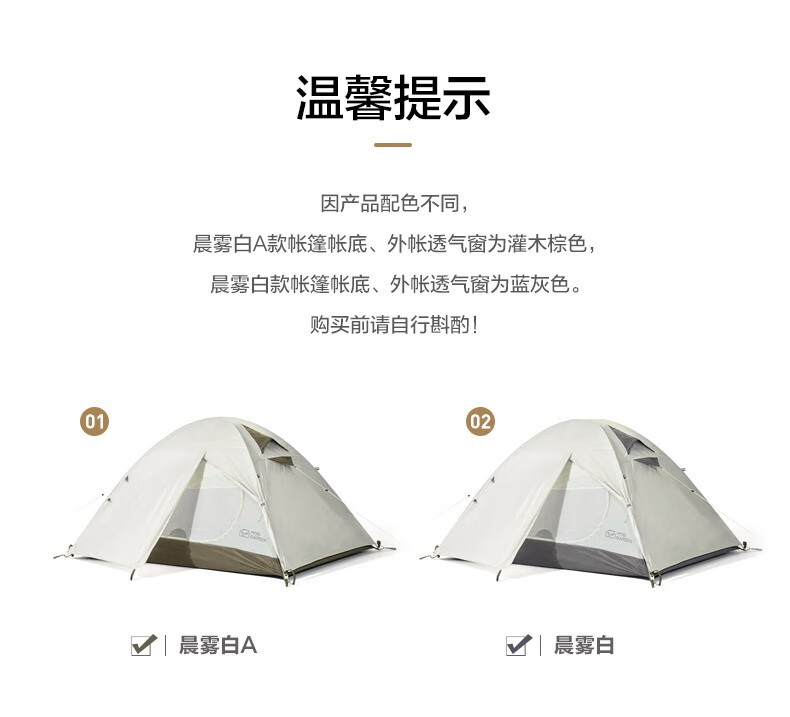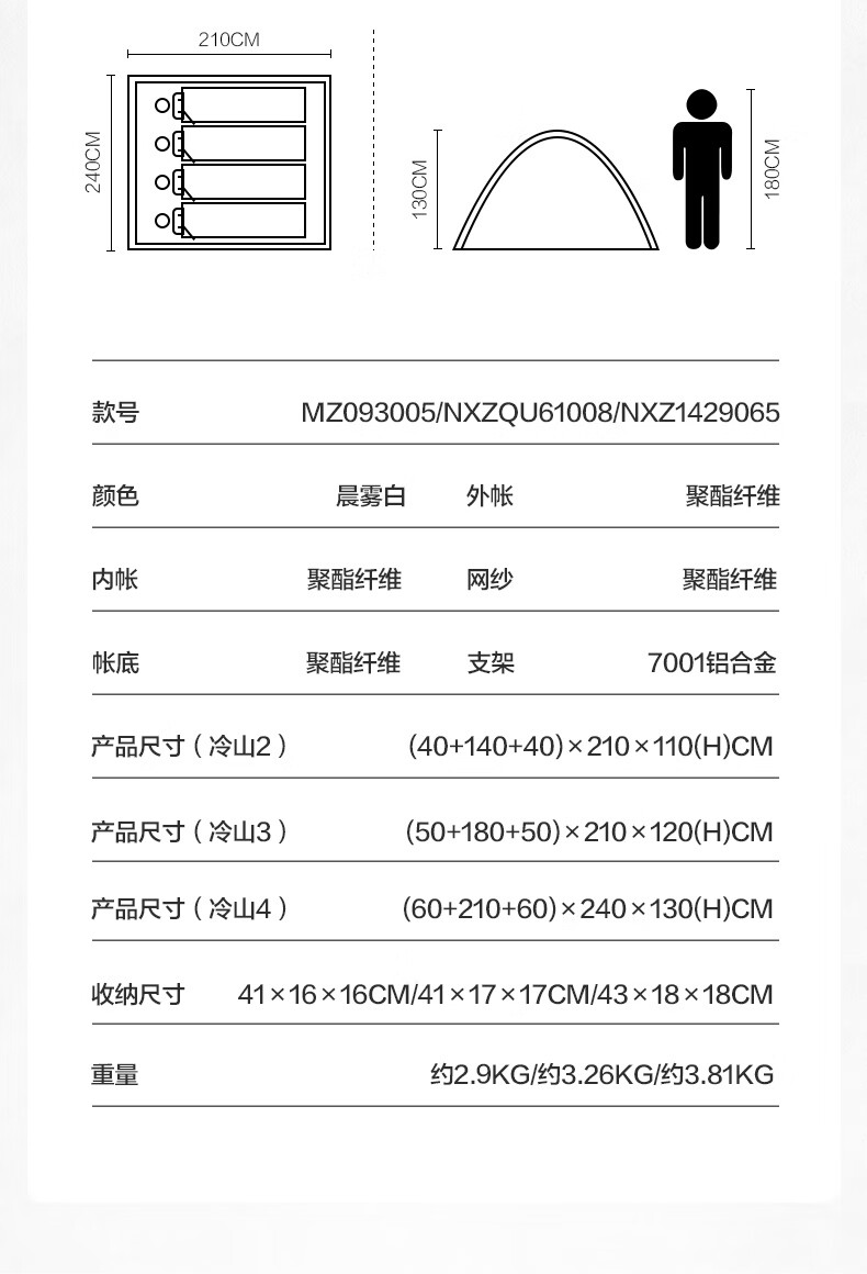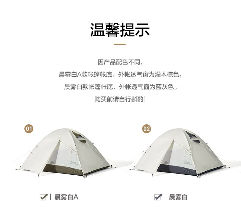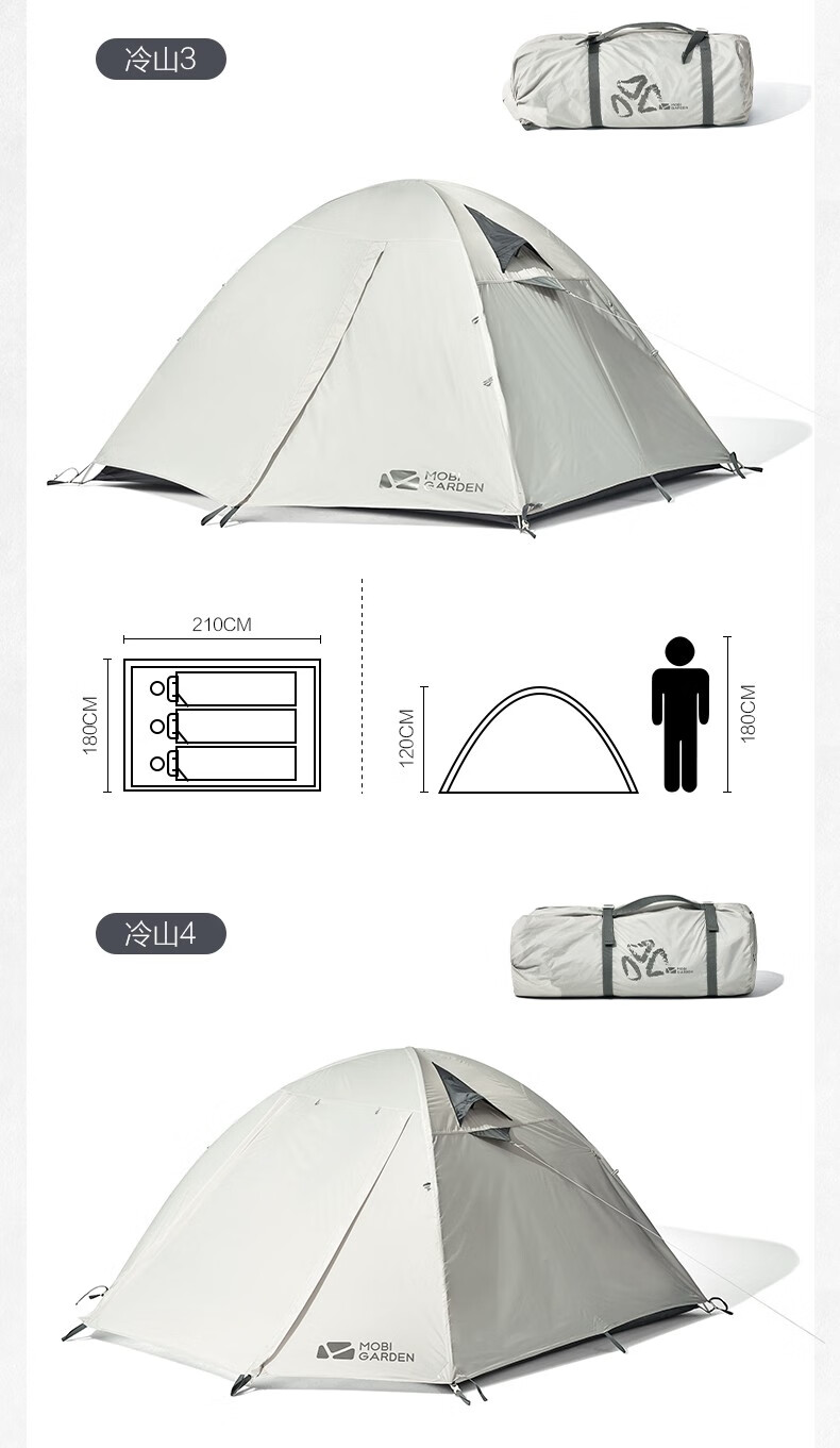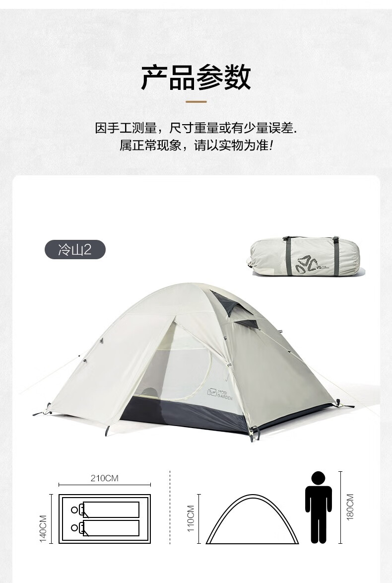 牧高笛冷山帐篷单双人帐篷户外露营徒步帐轻量化冷山1/2/3/4/冷山UL 【双人】冷山2 PLUS晨雾白