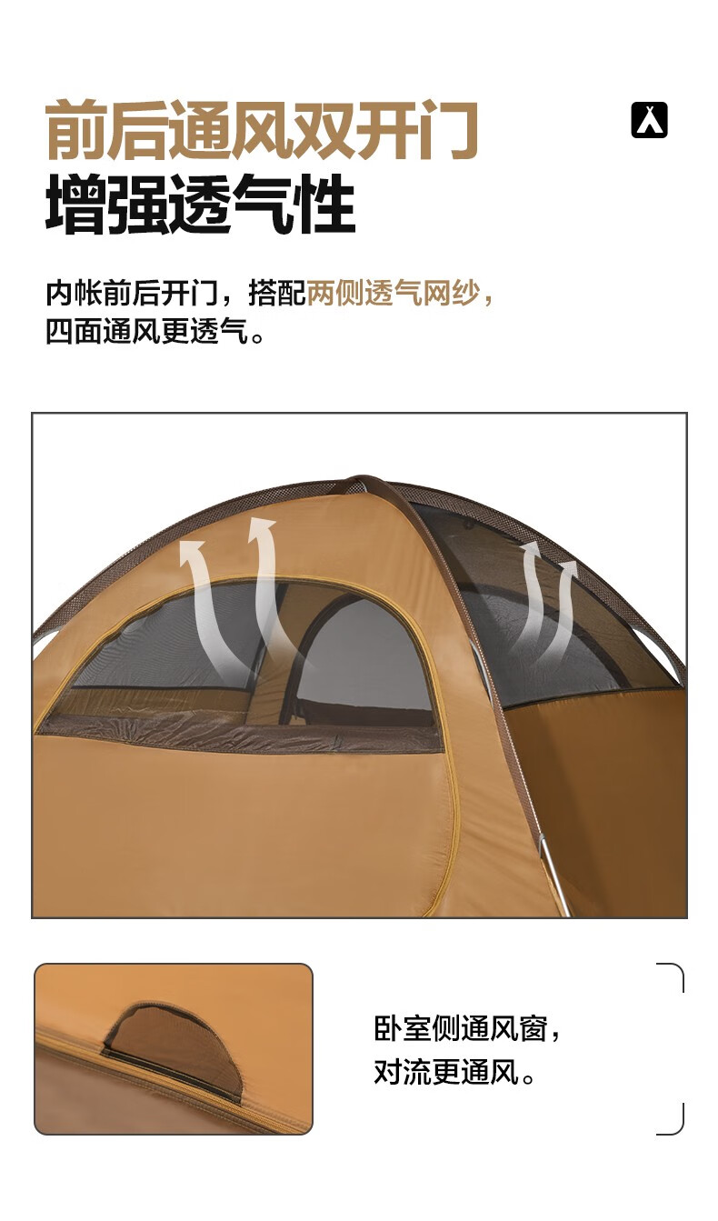 牧高笛冷山专业帐篷 户外露营防风防暴雨野营登山野外铝杆双层 三季帐篷 冷山2/ 暖沙色