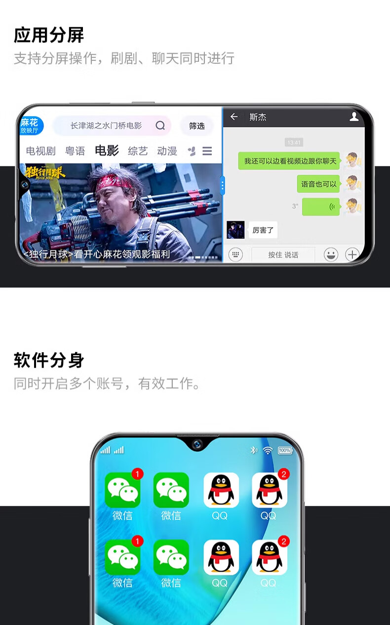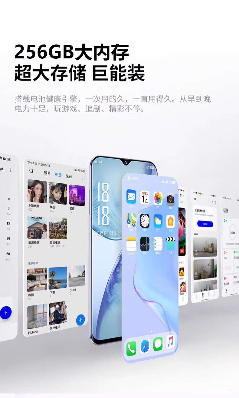 HANUWEI2025旗舰新机上市全网通5G双卡双待智能手机256G大屏超薄高清拍照百元机老人学生电竞游戏超长续航 青色 【原装未拆封】储存+64G