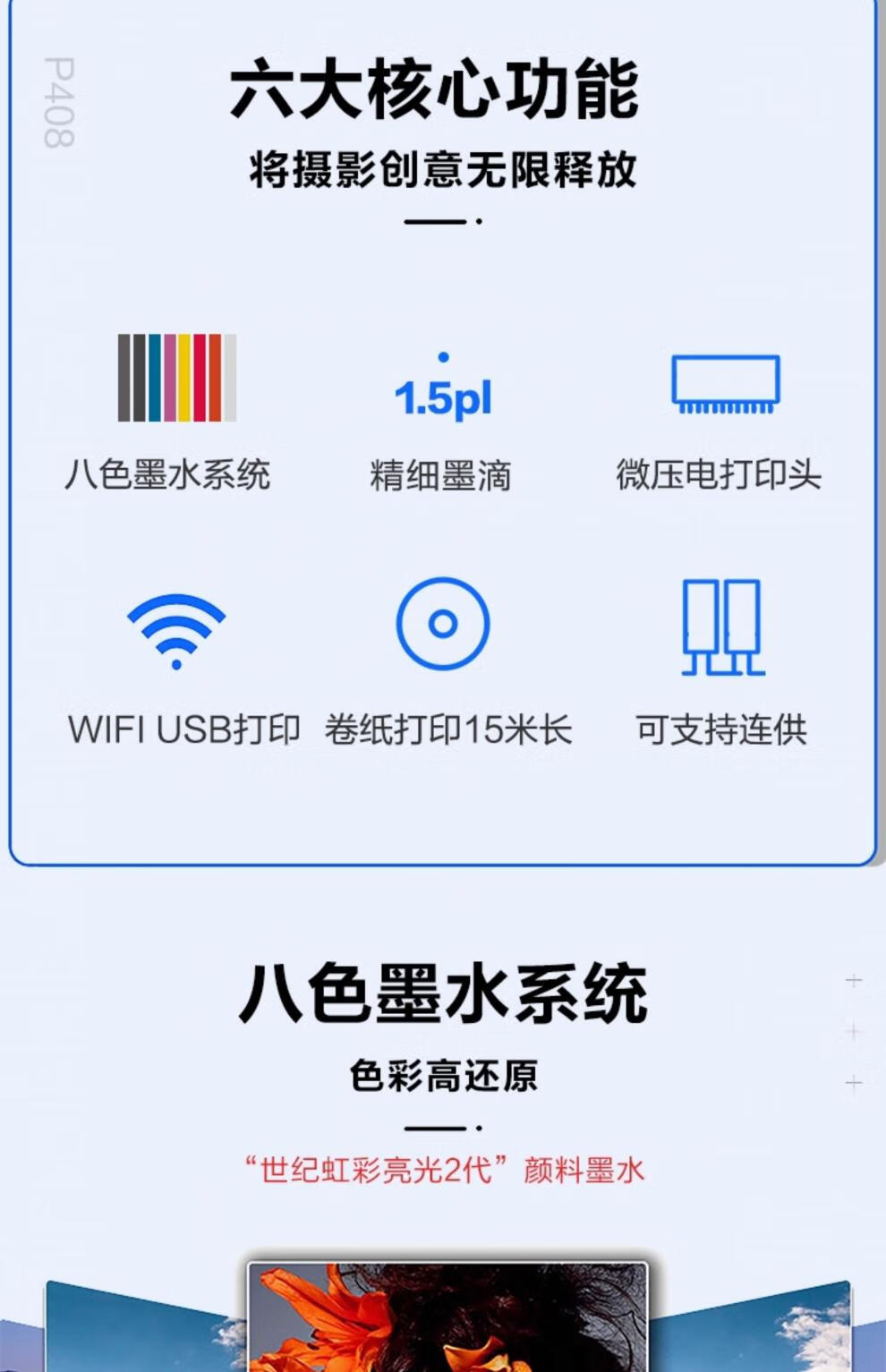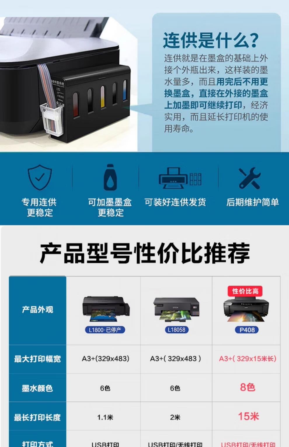 爱普生P408 A3+大幅面 8色照片彩色喷墨打印机~~ 标配 新机+墨盒