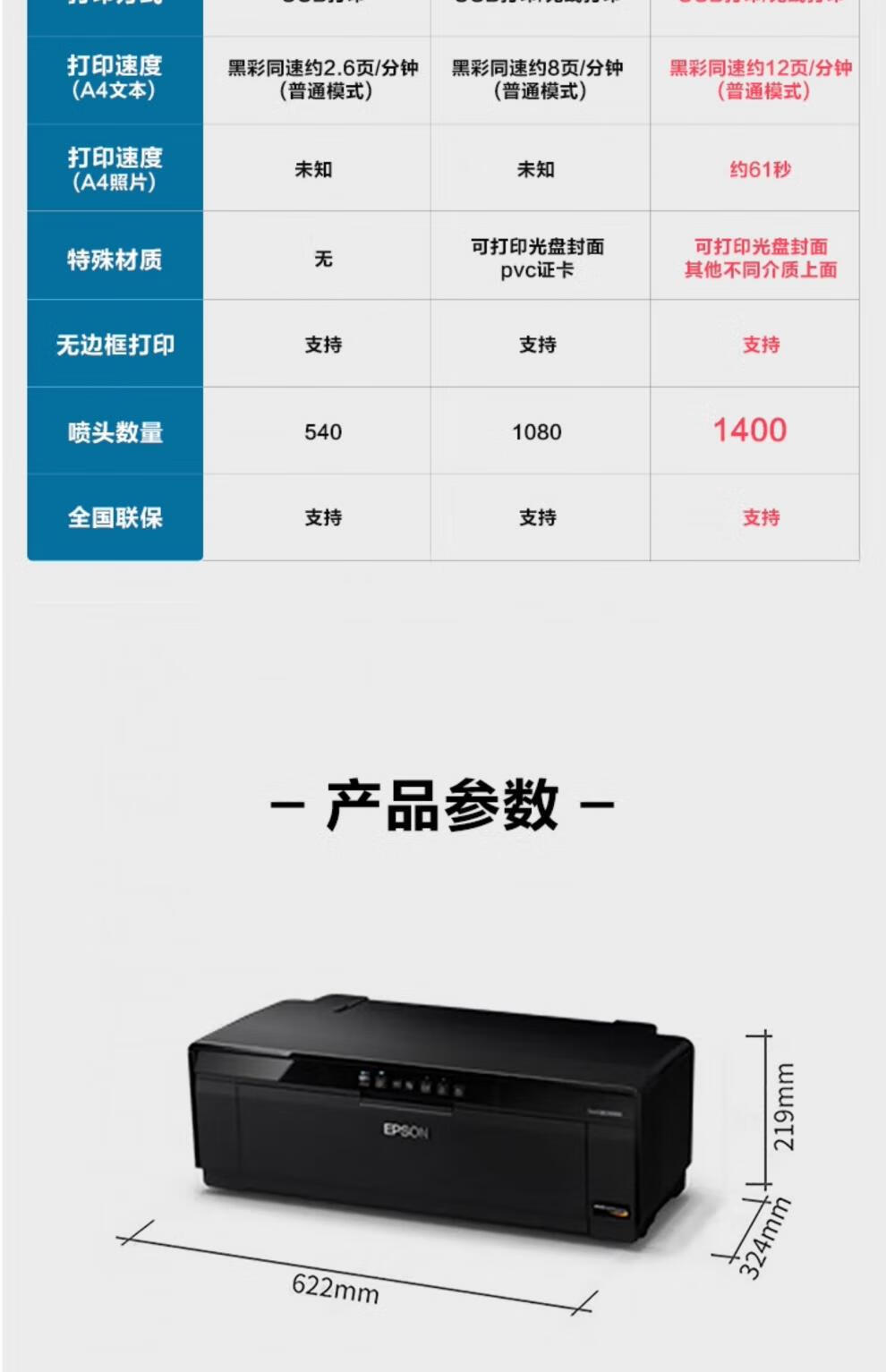 爱普生(EPSON) P408 爱普生A3+幅面专业照片打印机 支持无边距打印 CD/DVD盘面打印
