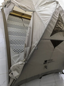 牧高笛冷山2终于等到双11优惠啦,之前看很多UP主用的冷山2,买回来就赶紧在家搭建起来了,搭建简单,折叠的铝杆,方便收纳,地钉也很扎实也不重,顶部可以挂灯,也有收纳空间,四个角有储物空间,内部拉链可以系上,安全性有保证。后续使用了再来追评。