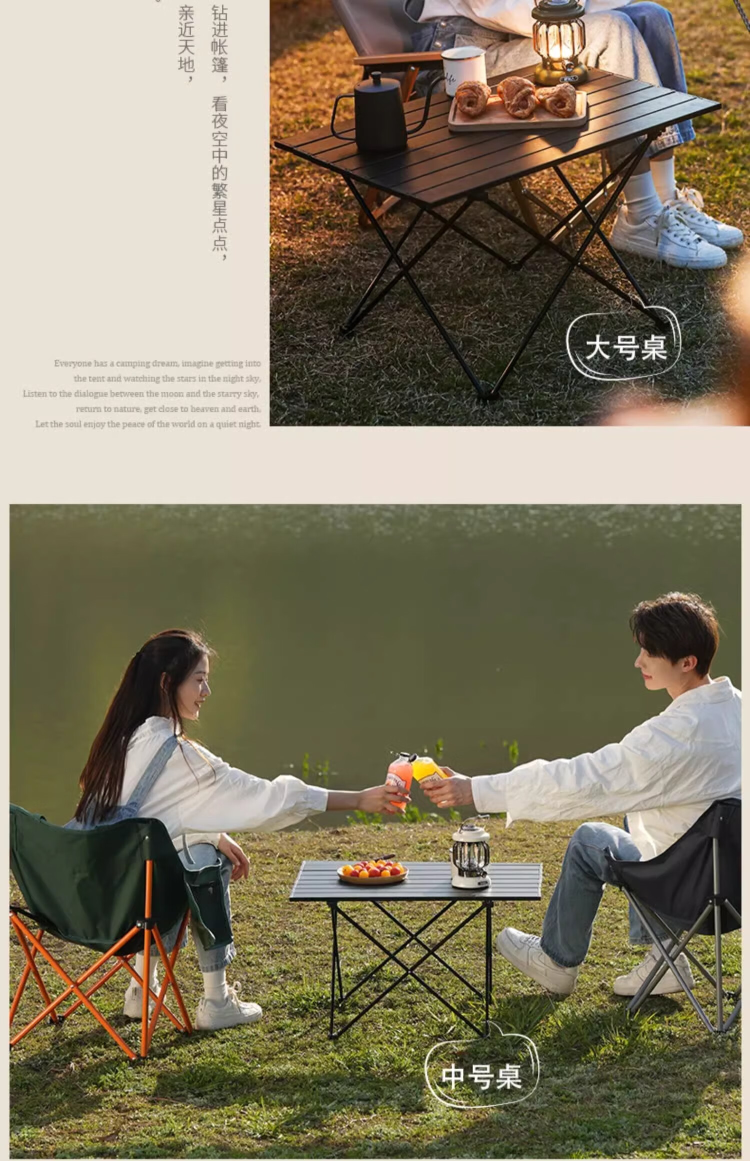 原始人户外折叠桌椅露营野餐装备用品铝合金蛋卷桌子椅子套装全套 升级款全黑-小号(送收纳袋)