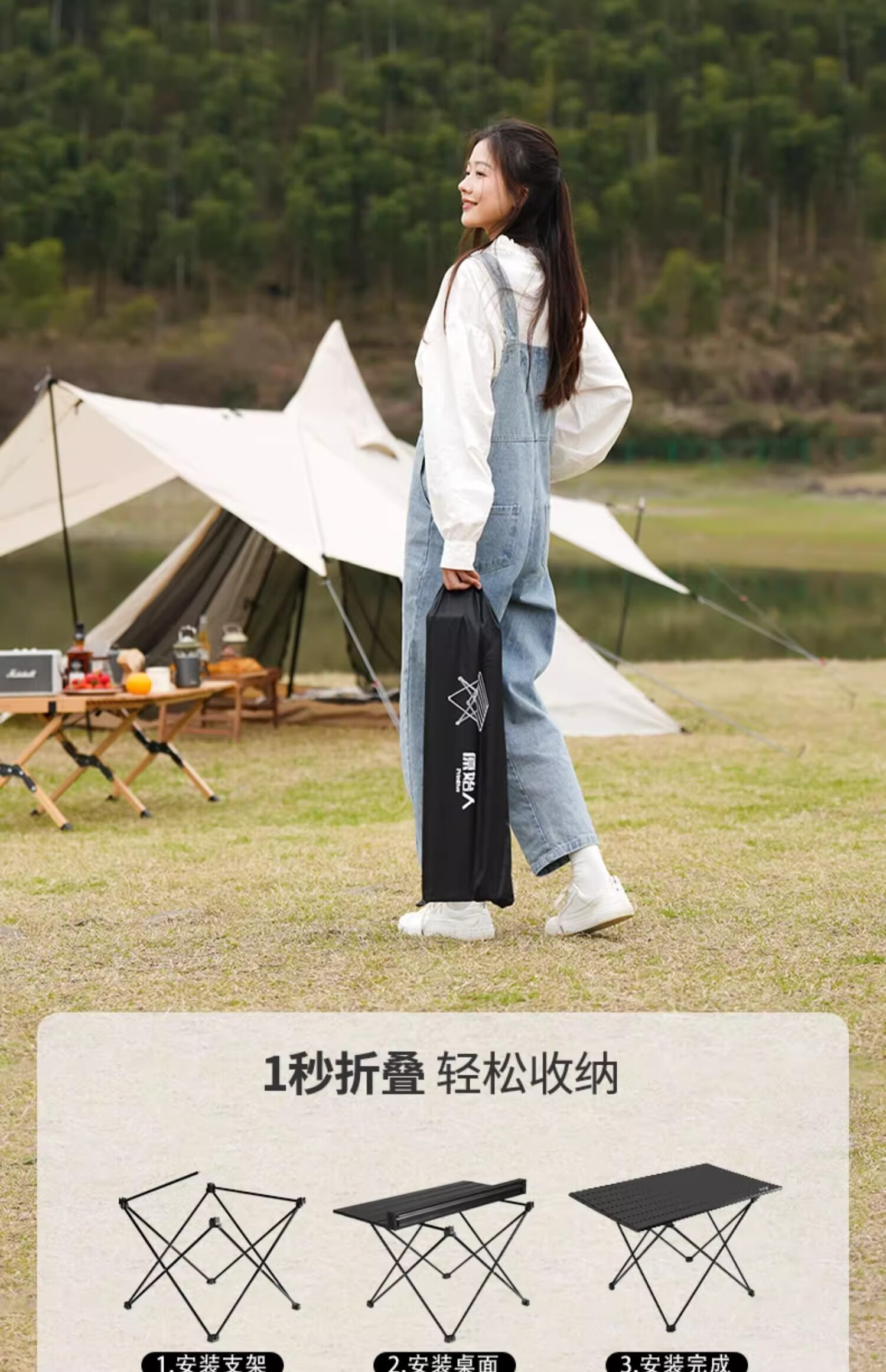 不错的铝合金小桌子,原始人的铝制品还是挺让人放心的,先开始不会装,跟客服要了视频,轻便,看着挺结实的,户外吃东西喝水就靠它了,收纳起来体积也不大,家里也可以用,不错