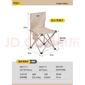 原始人折叠椅凳露营椅子户外便携桌椅野餐野外野营钓鱼写生小马扎 卡其色大号折叠椅【配收纳袋】