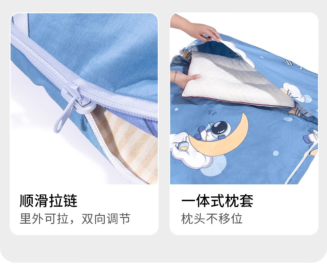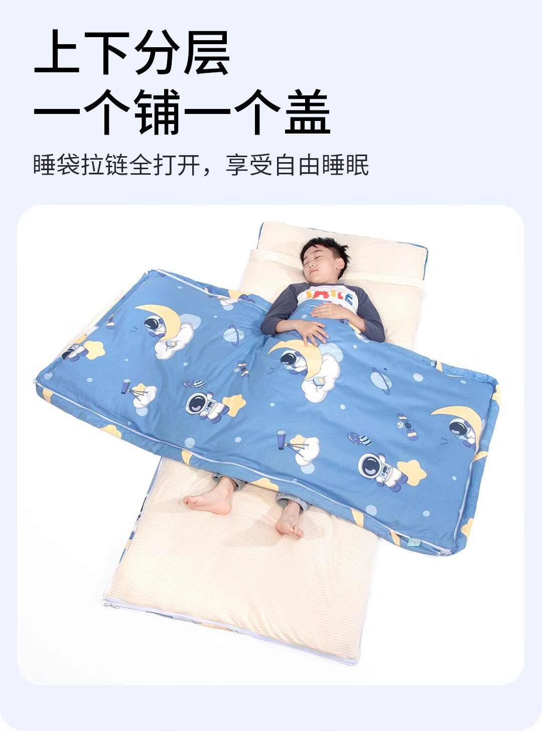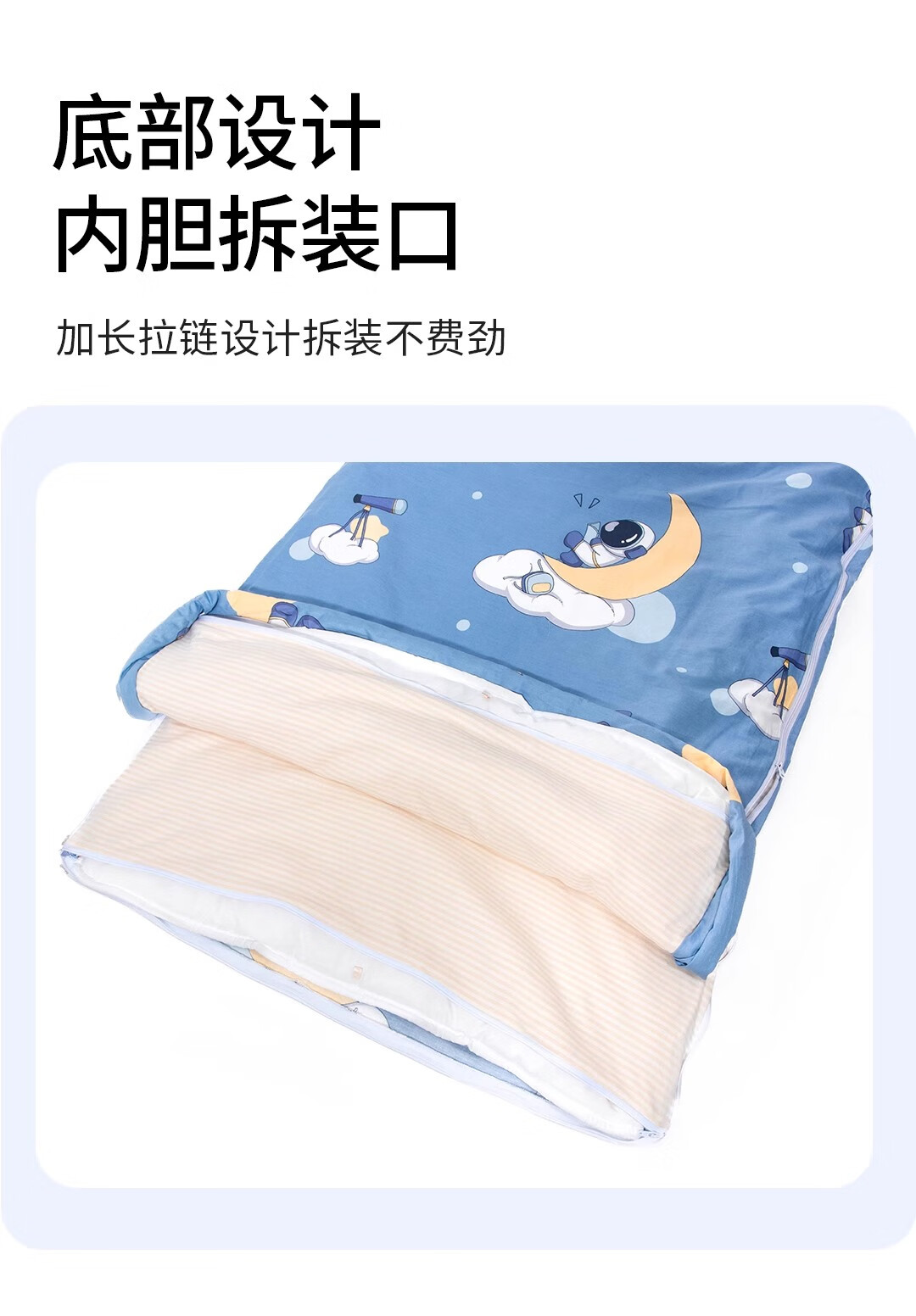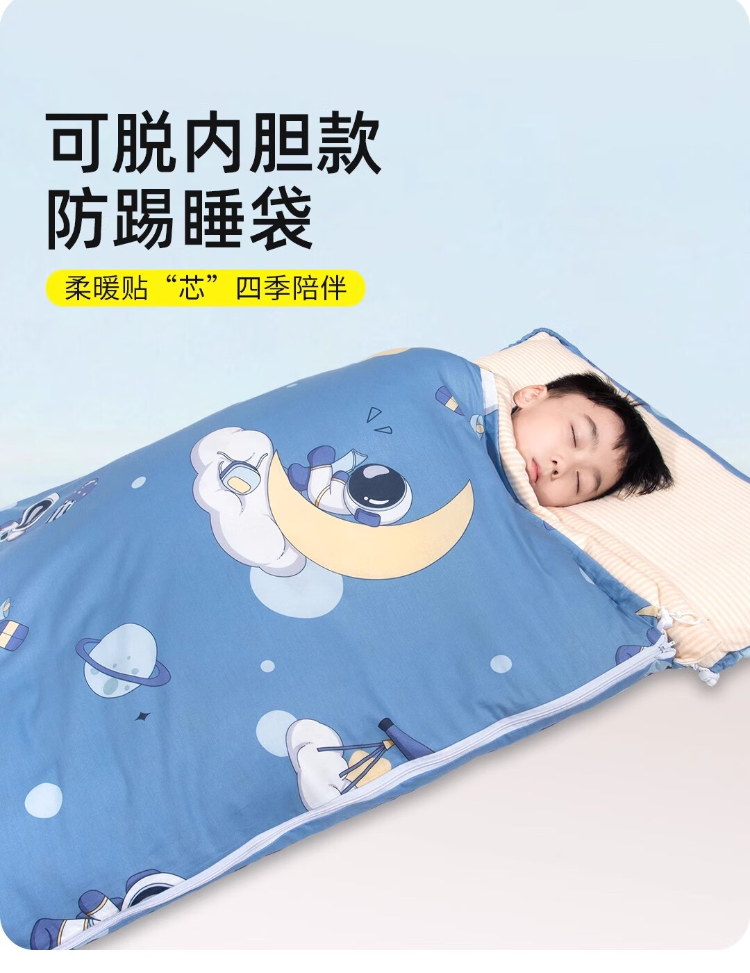 爱梦轩可拆内胆纯棉儿童睡袋护肩防踢被四季通用加厚小学生午睡大童被子 星球探月【被套+1薄1厚胆15~25℃】