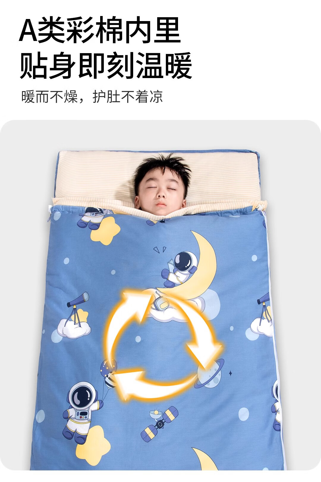 皓润琪 纯棉小学生午休睡袋秋冬款儿童夹棉幼儿园室内午睡被宿舍防踢被 厚(65*170)宇航员