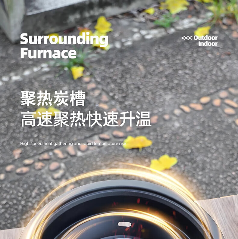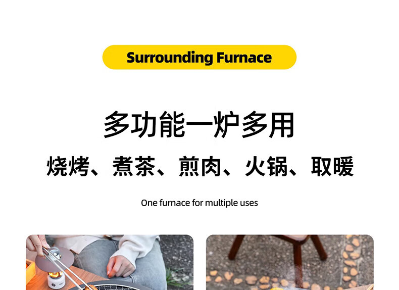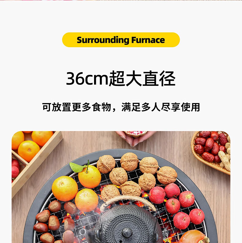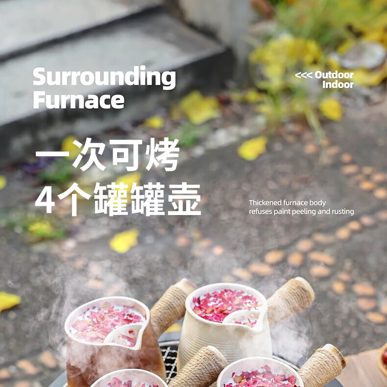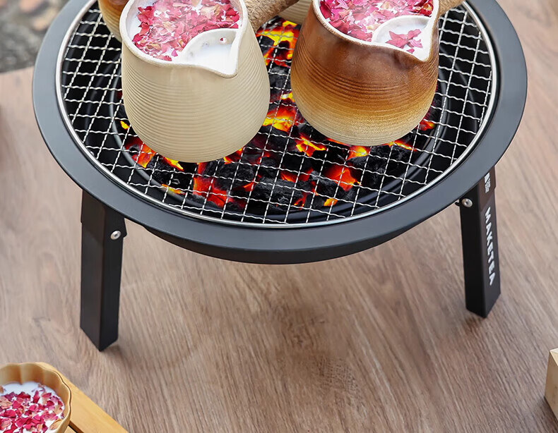 原始人便携式围炉煮茶烤火炉套装器具全套冬日户外烧烤炉子家用室内火盆 围炉+精铁烤盘