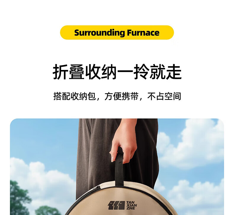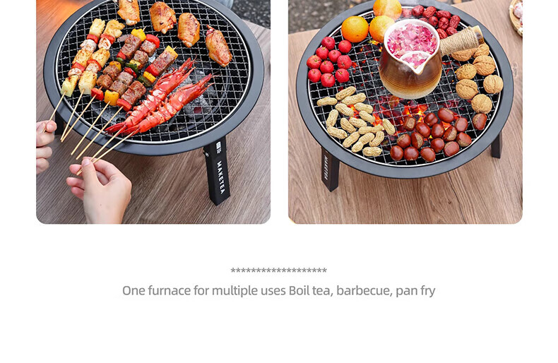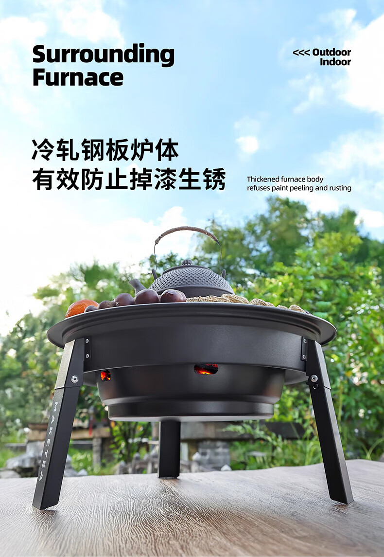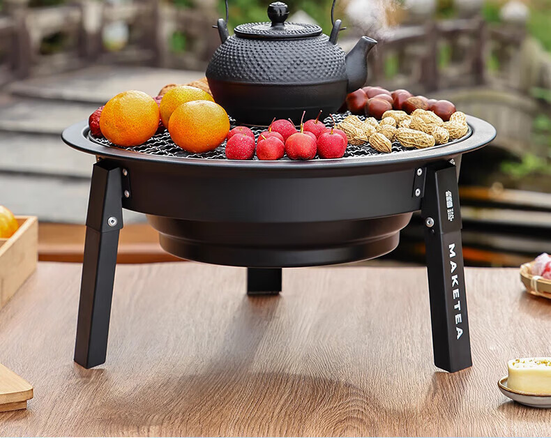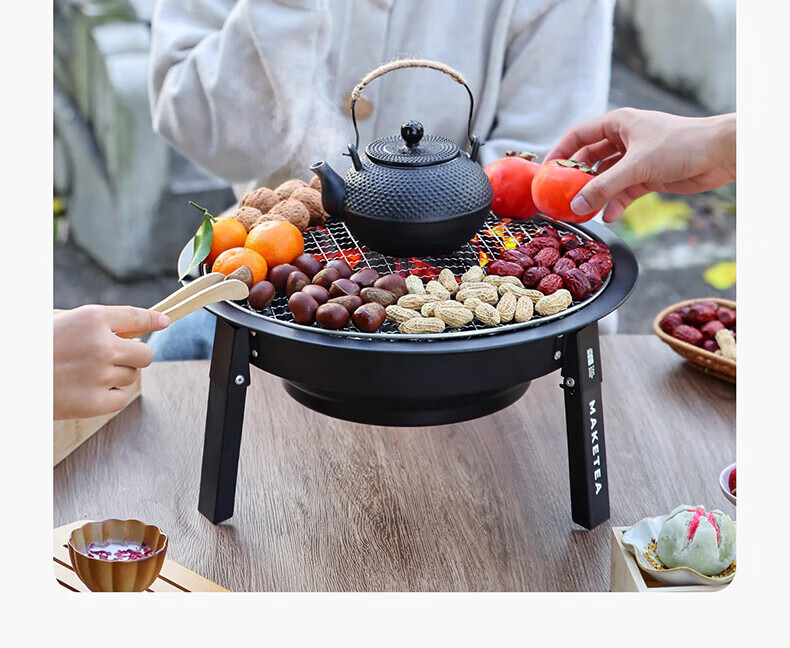 探险者围炉煮茶烧烤炉家用烤火炉取暖煮茶户外便携烤火盆庭院烤炉 折叠烤火炉+铸铁壶+3斤炭+收纳袋
