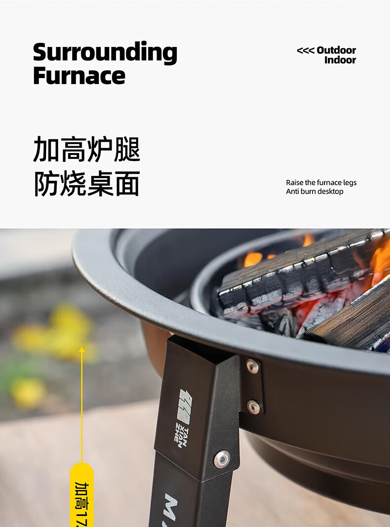 北极狼围炉煮茶家用庭院室内烤火盆煮茶烧水冬季户外露营烧烤取暖 号43cm围炉标配不锈钢烤网