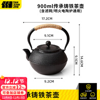 探险者围炉煮茶器具水壶电陶炉煮茶套装陶瓷茶壶家用烤火户外烧水壶 【铸铁】如意提梁水壶900ML