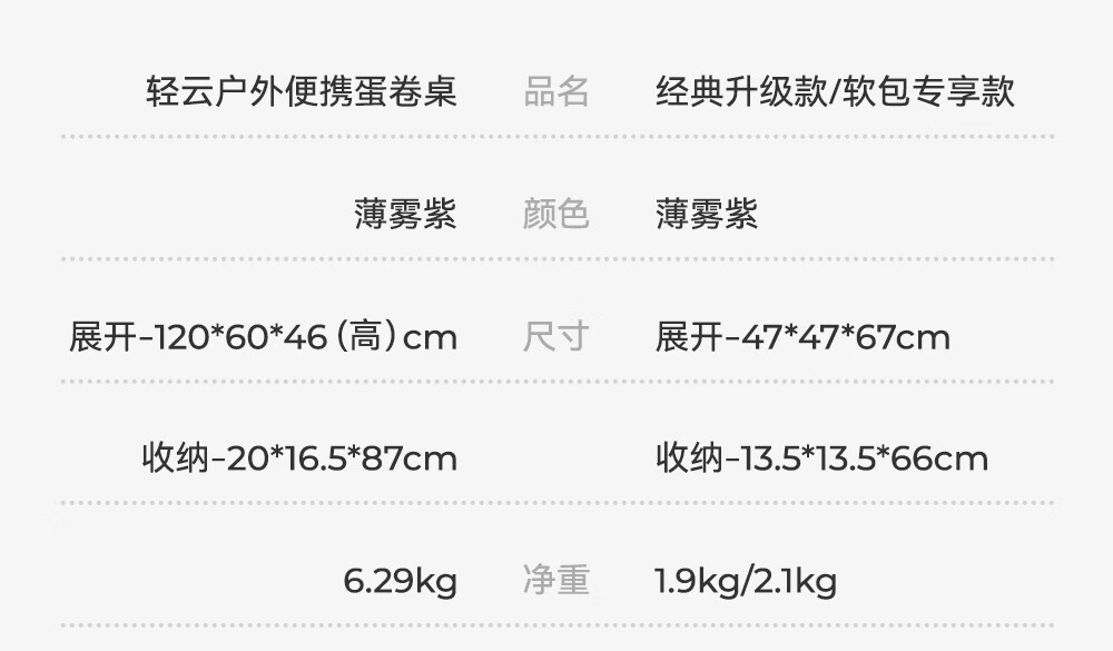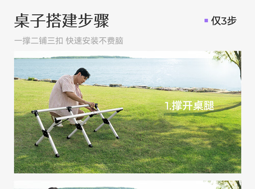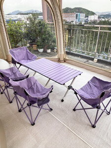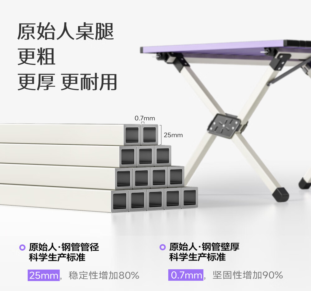 原始人户外折叠桌椅蛋卷桌露营桌椅全套装备便携式新款桌椅野餐野营摆摊 新款薄雾紫大号【3腿支撑】