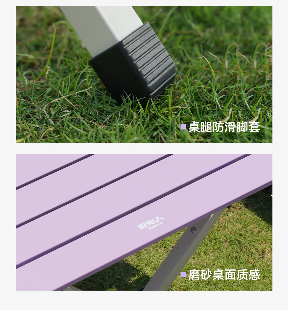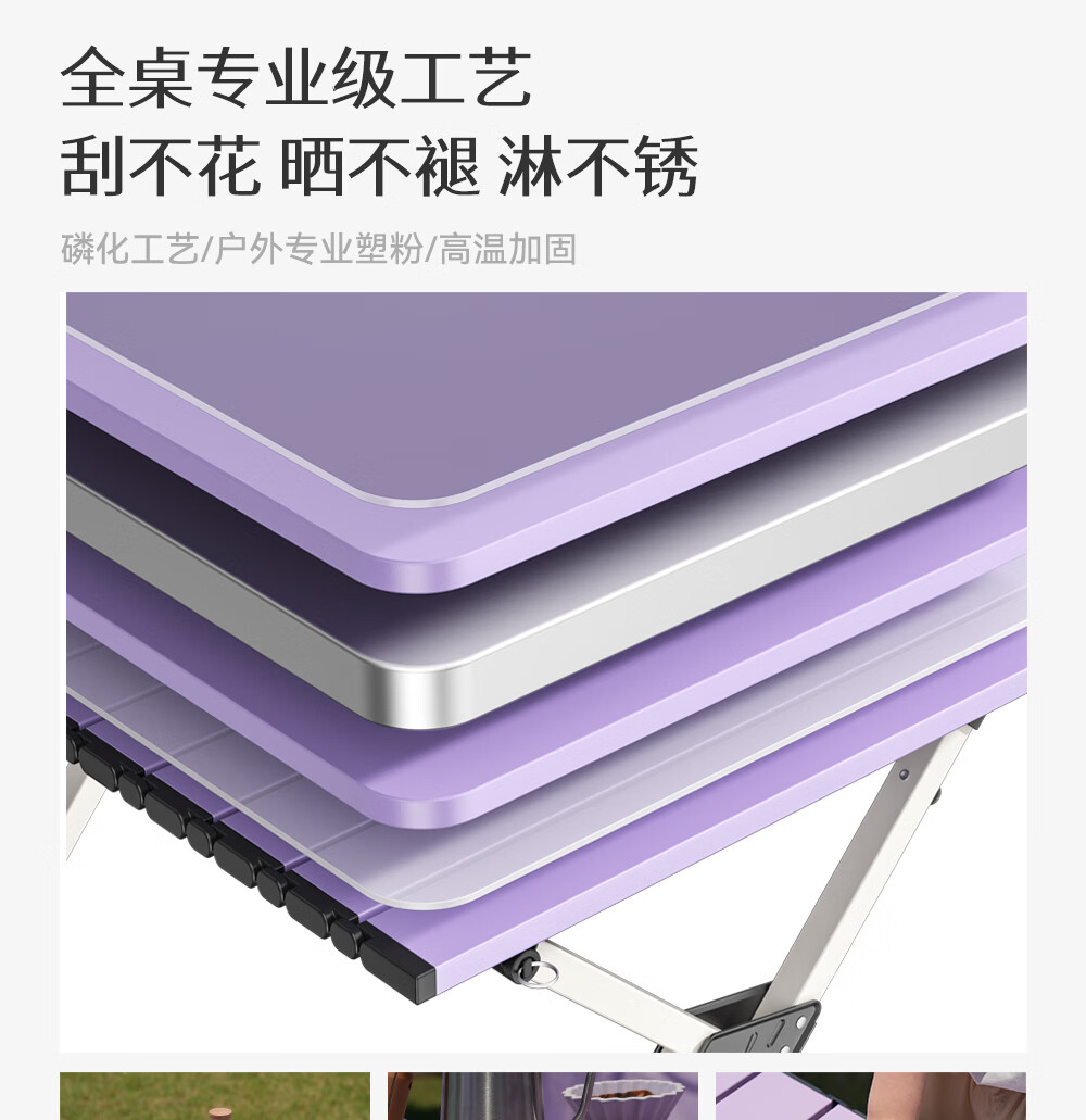 原始人户外折叠桌子便携蛋卷桌露营装备全套折叠野餐桌椅野炊便携野营桌 大号紫色【超强支撑 加粗管径】