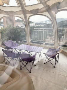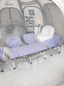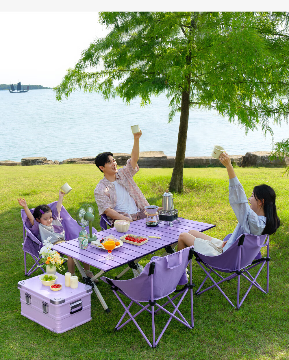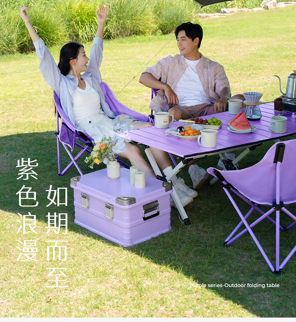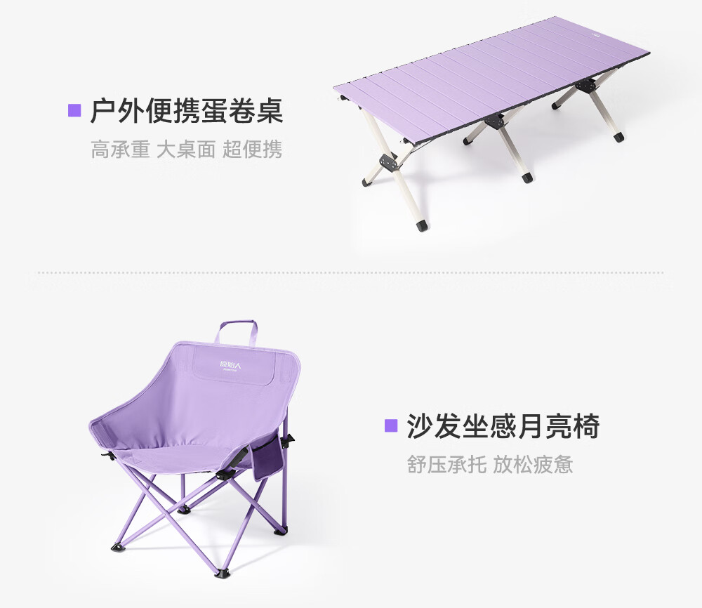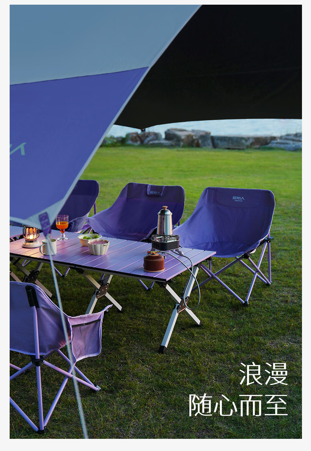 原始人(The Primitive)户外折叠桌椅蛋卷桌露营桌椅全套装备便携式新款桌椅野餐野营摆摊 大号薄雾紫+经典款月亮椅*6