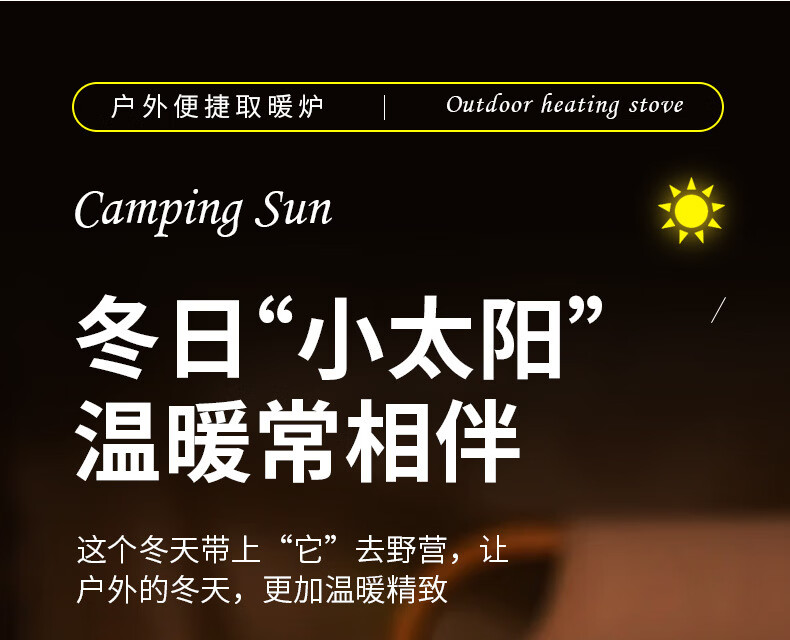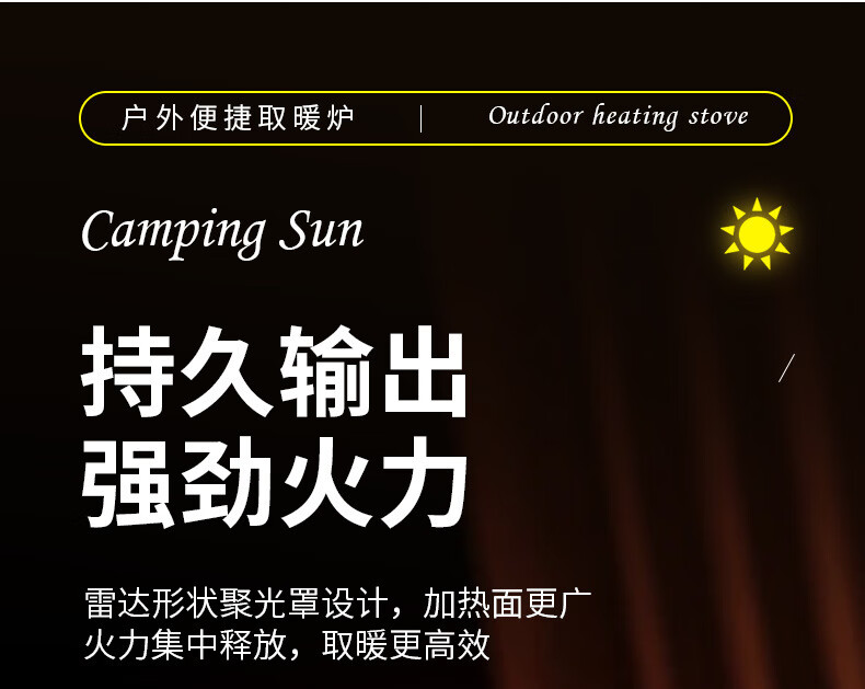 CAMPSOR户外取暖器便携取暖炉露营帐篷取暖神器垂釣迷你小太阳烤火炉 黑色卡式接口(不含燃气罐)