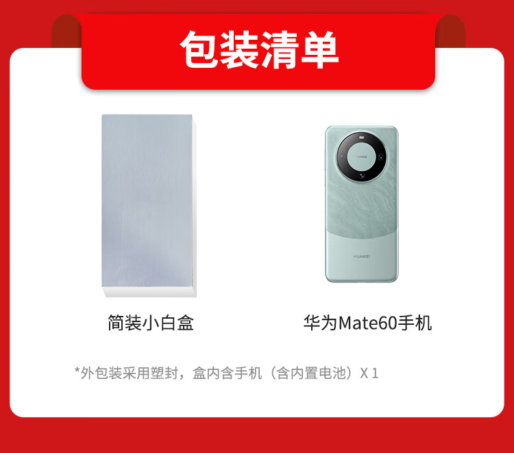 包装盒*1(内含手机) 单独赠送华为原装66W快充套装