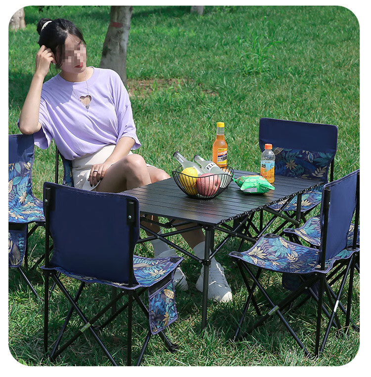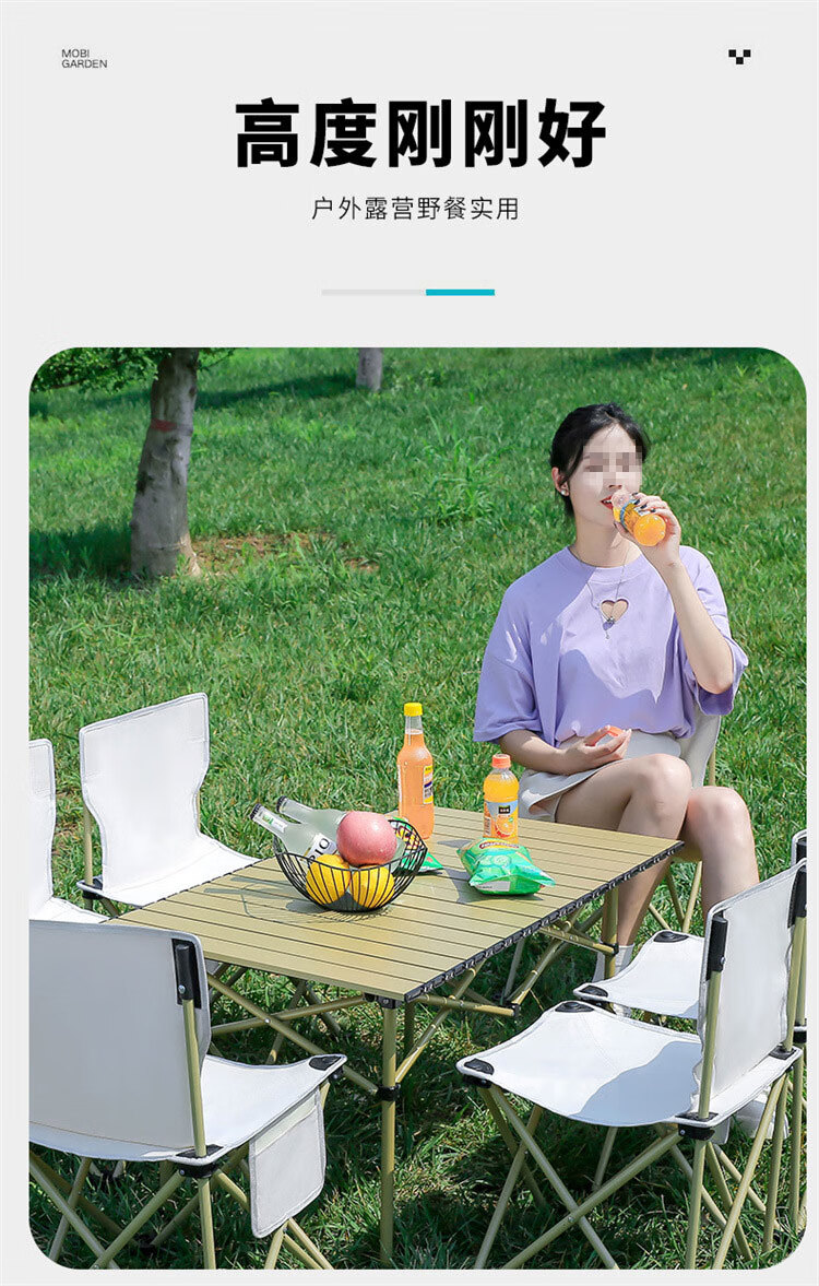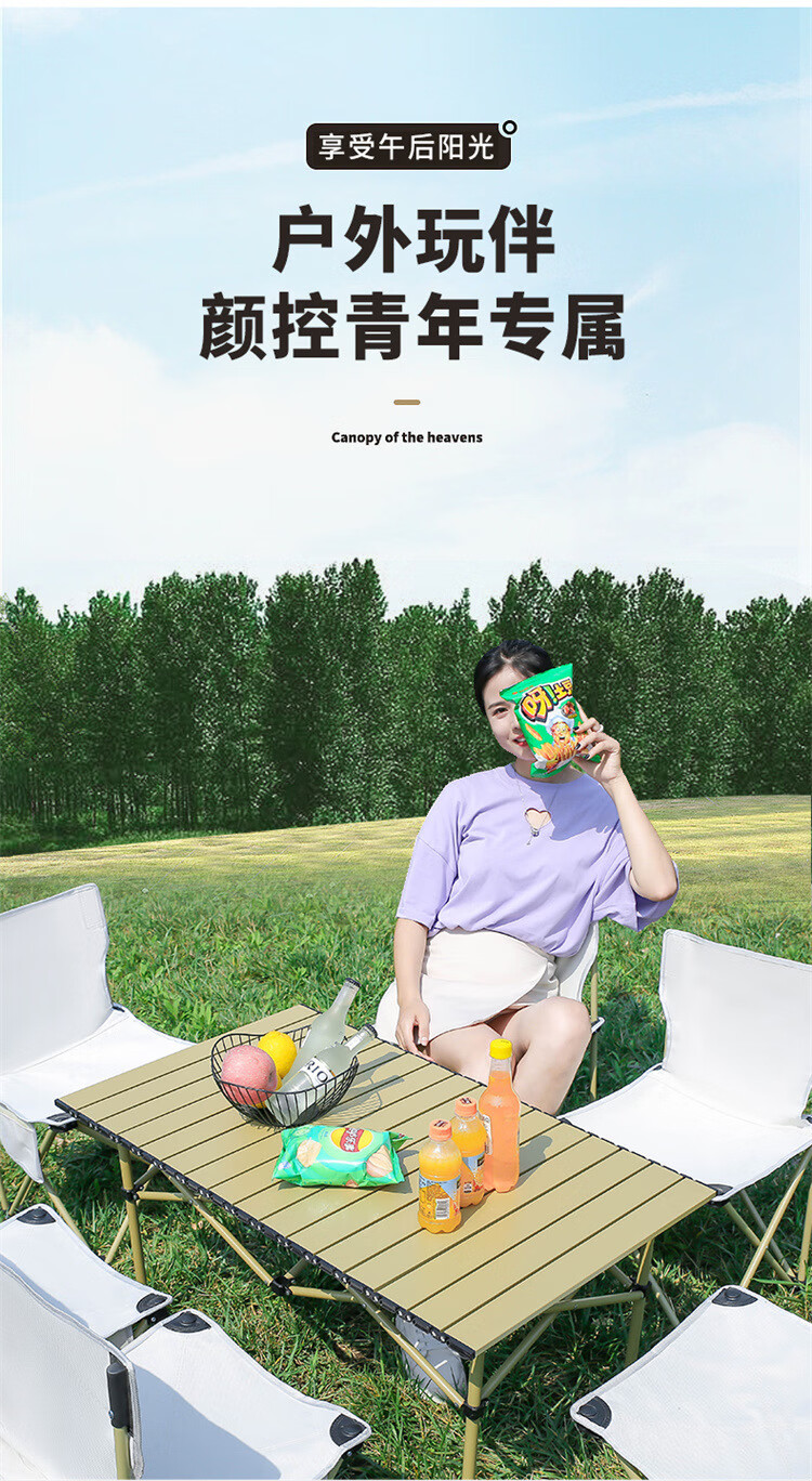 心楠户外折叠桌子蛋卷桌烧烤桌椅露营桌椅摆摊野餐装备便携式野炊方桌 轻奢黑蛋卷露营方桌