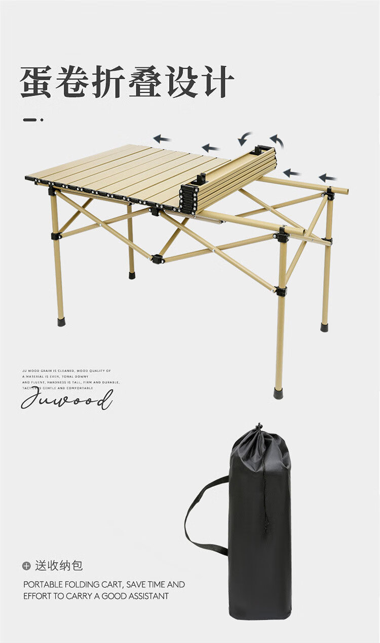 北极狼(BeiJiLang)蛋卷桌户外折叠桌椅套装便携式露营野餐桌椅野营摆摊桌子 榉木色蛋卷桌60cm【加厚碳钢】