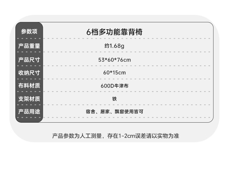 清系靠背椅户外便携式折叠椅躺椅沙滩椅午休椅露营休闲椅子 6档便携式靠背椅