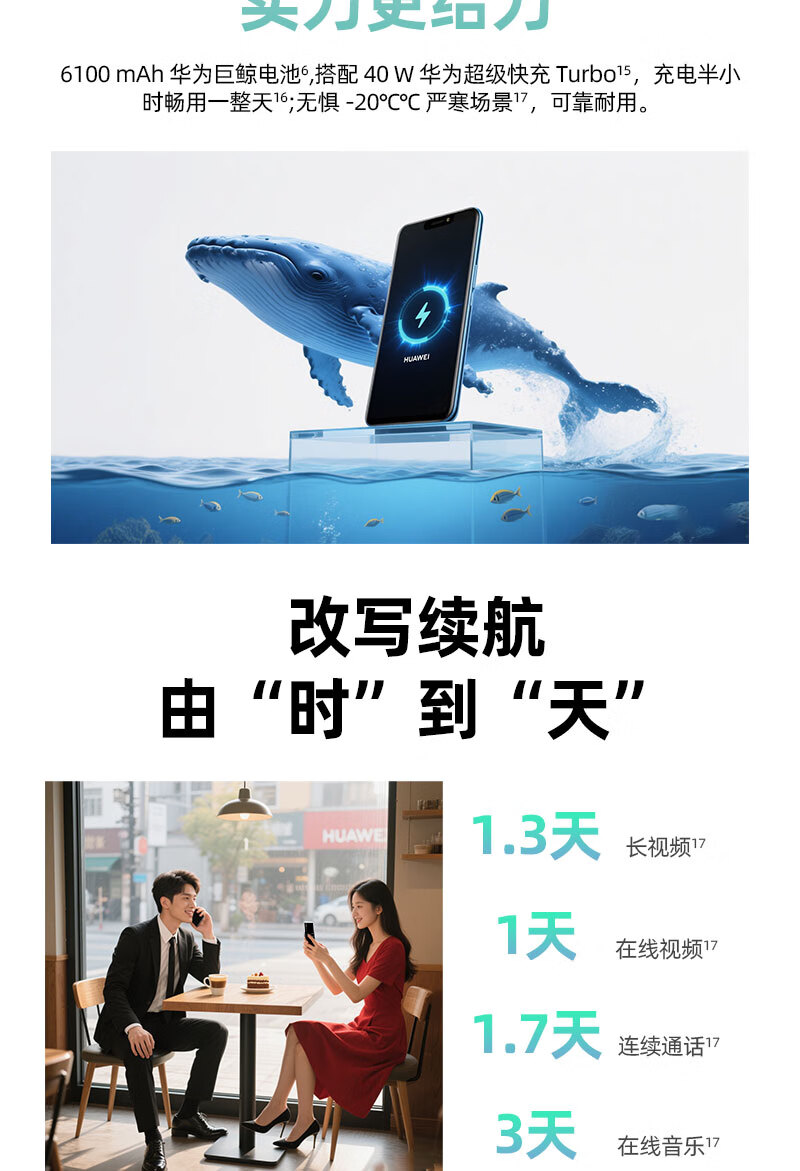 华为畅享70X 手机巨鲸长续航 五星超耐摔 鸿蒙曲面屏手机 24期免息 8GB+256GB 湖光青 官方标配