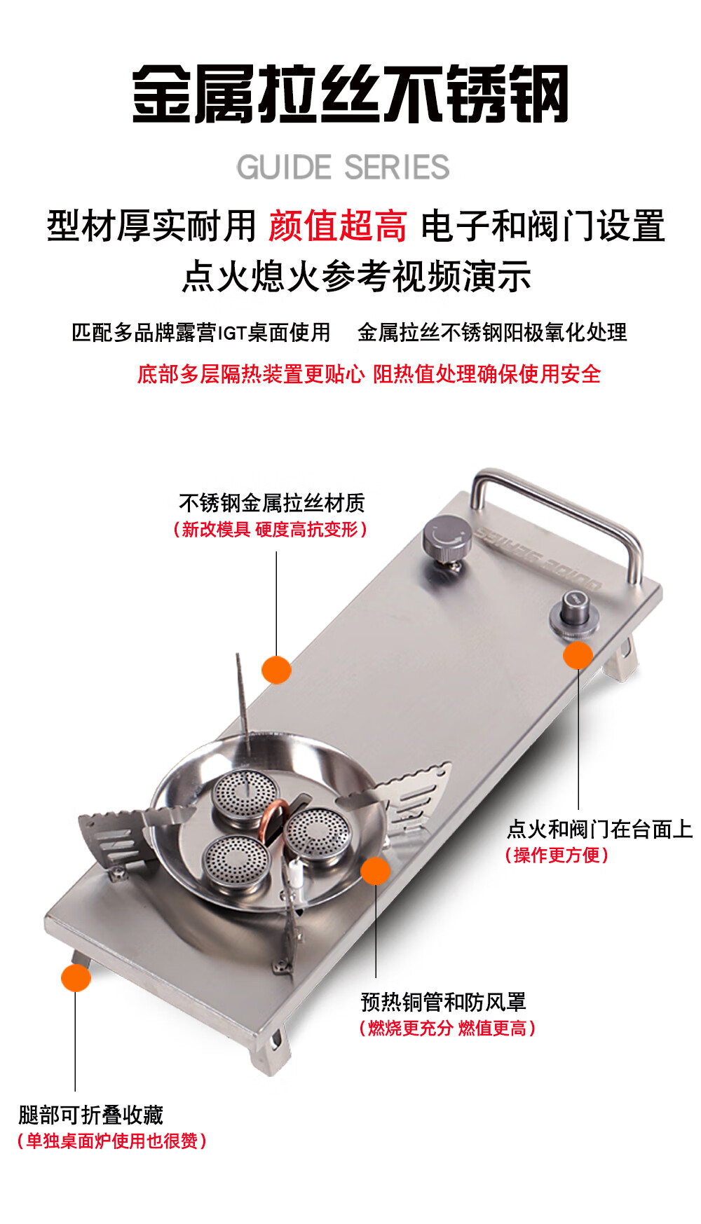 Guide Series户外露营IGT炉桌面炉猛火炉具单元炉野营炉灶半单元燃气灶卡式炉 GS-501不锈钢IGT0.5单元炉灶--黑色