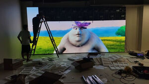 屏幕尺寸很大,大画面的分辨率、画质都很高,两三米看也很清晰,隔远几米看视觉也不错,刚刚施工完成,安装效率专业。